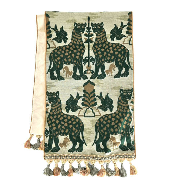 Table Runner with Tassel Trim Emerald Green Silk Brocatelle Luigi Bevilacqua Fabric Fiere Pattern