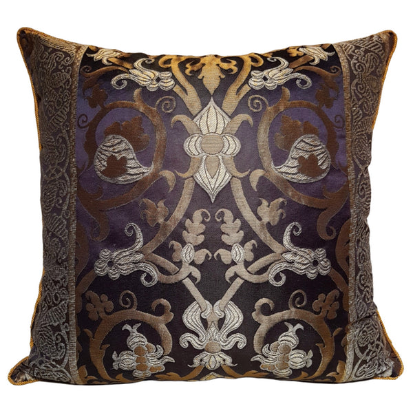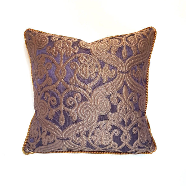 Housse de Coussin Fait Main en Tissu Jacquard de Soie Rubelli Trebisonda Violet et Bronze