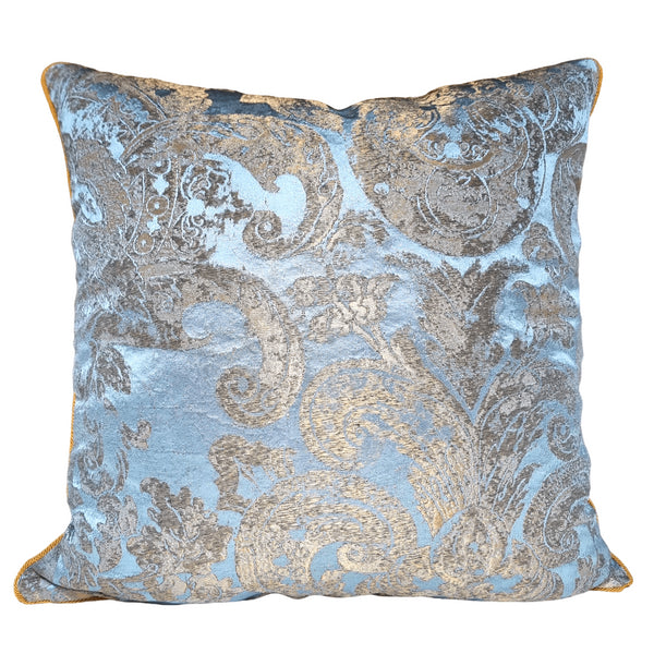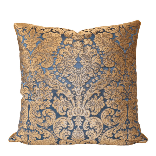Housse de Coussin Fait Main en Tissu Brocas de Soie Rubelli Barbarigo Bleu et Or