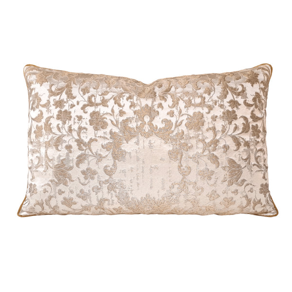 Housse de Coussin Marabout Fait Main en Tissu Lampas de Soie Rubelli Belisario Ivoire et Or