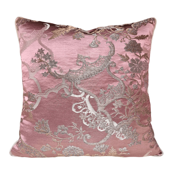 Housse de Coussin Marabout Fait Main en Tissu Lampas de Soie Rubelli Michelle Rose