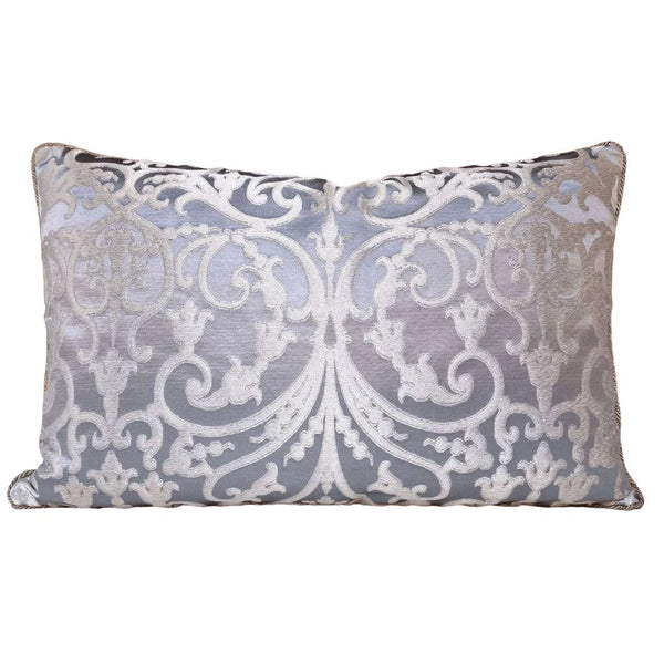 Housse de Coussin Fait Main en Tissu Brocas de Soie Rubelli Lady Hamilton Bleu et Argent