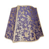 Abat Jour Fait Main Carré Alsacien Tissu Jacquard de Soie Rubelli Les Indes Galantes Bleu-Violet et Or