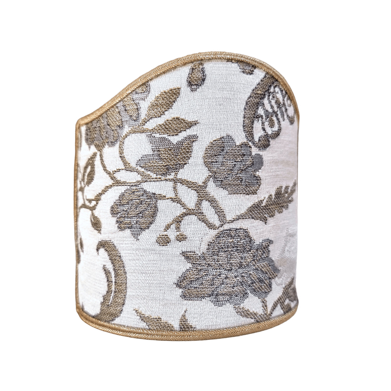 Abat Jour Demi Lune à Pince en Tissu Brocart de Soie Rubelli Madama Butterfly Ivoire et Or