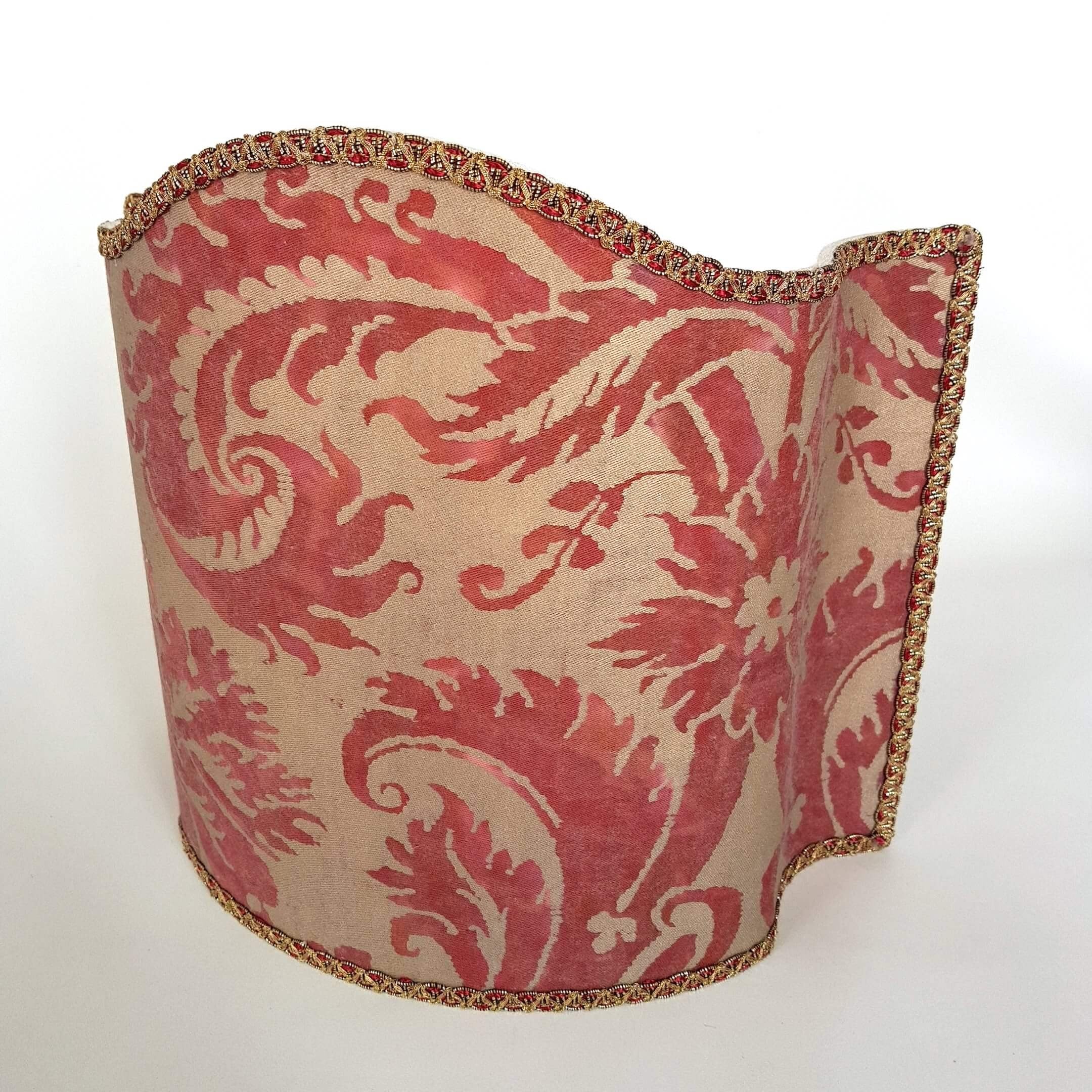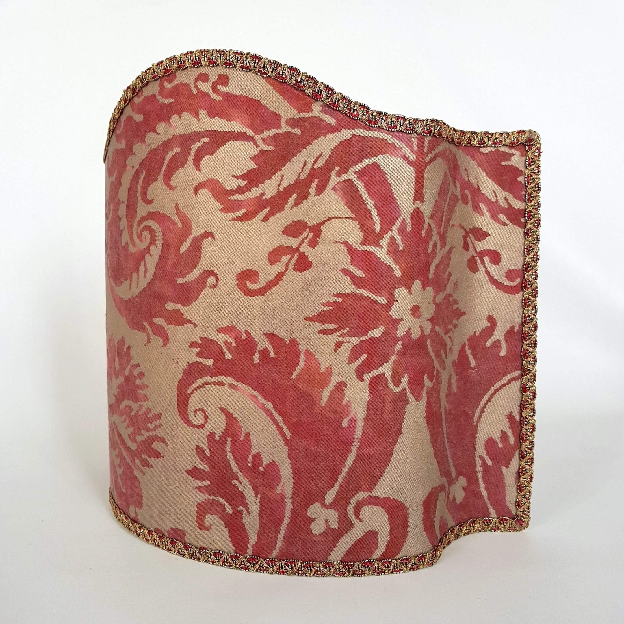 Abat jour fait main avec un tissu imprimé à la main Fortuny Demedici rouge et or à bordure or