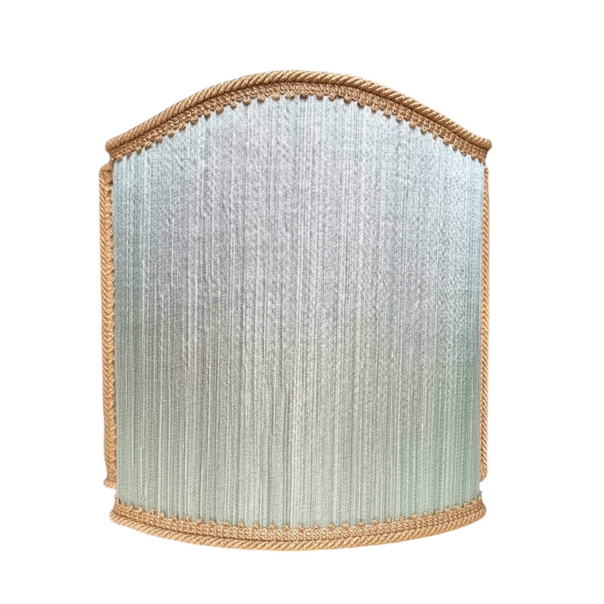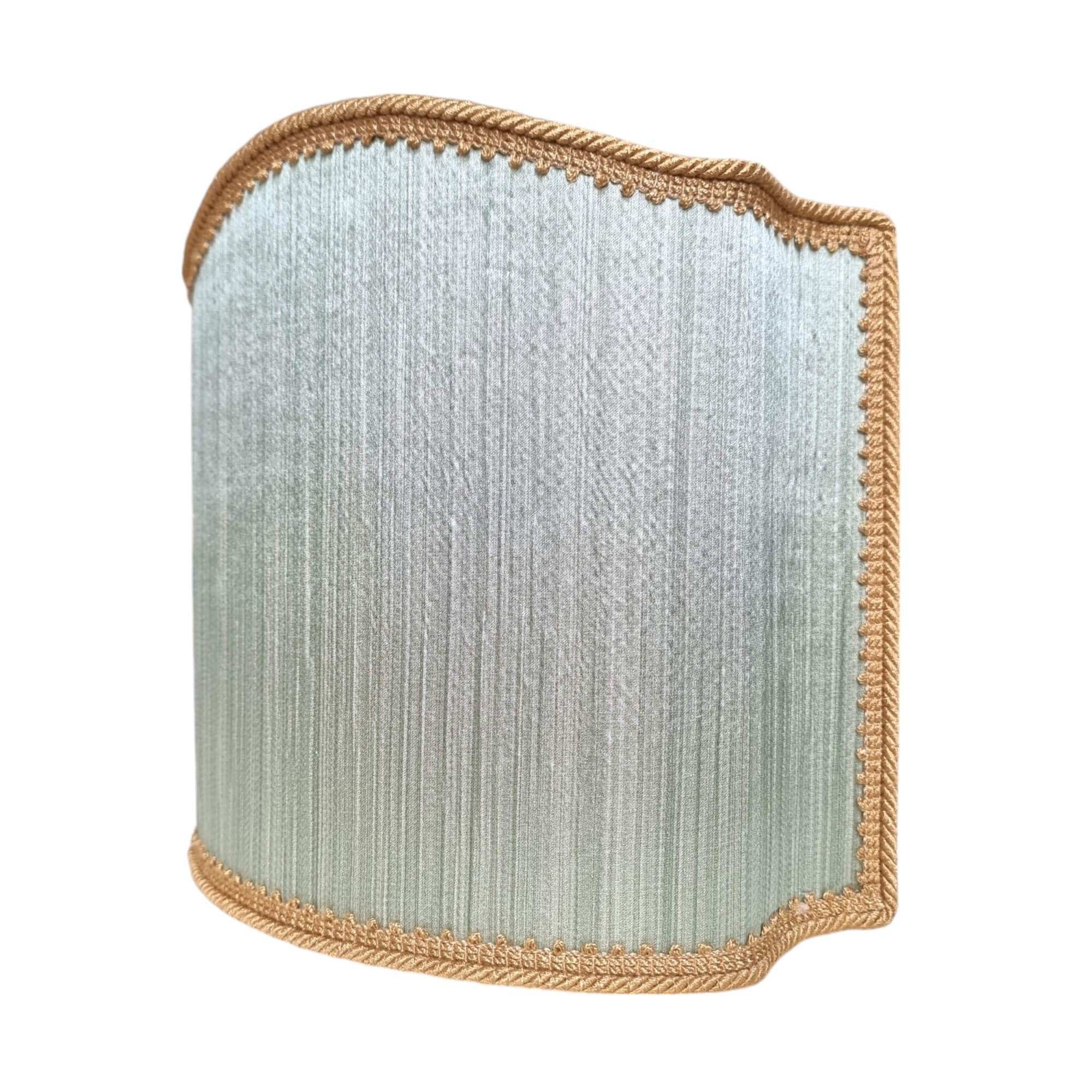 Abat jour fait main avec un tissu crêpe satin Rubelli Canalgrande couleur vert jade à bordure couleur or