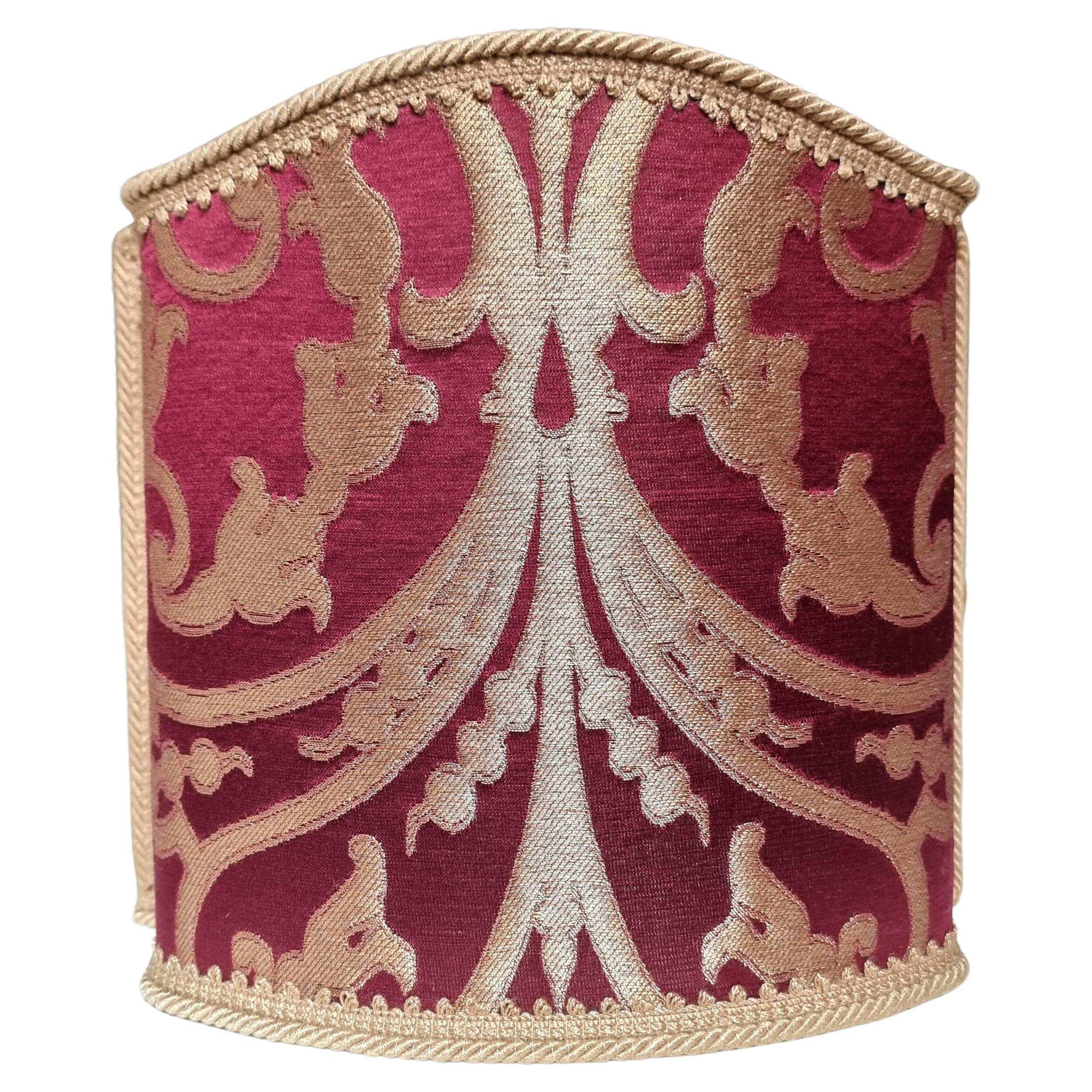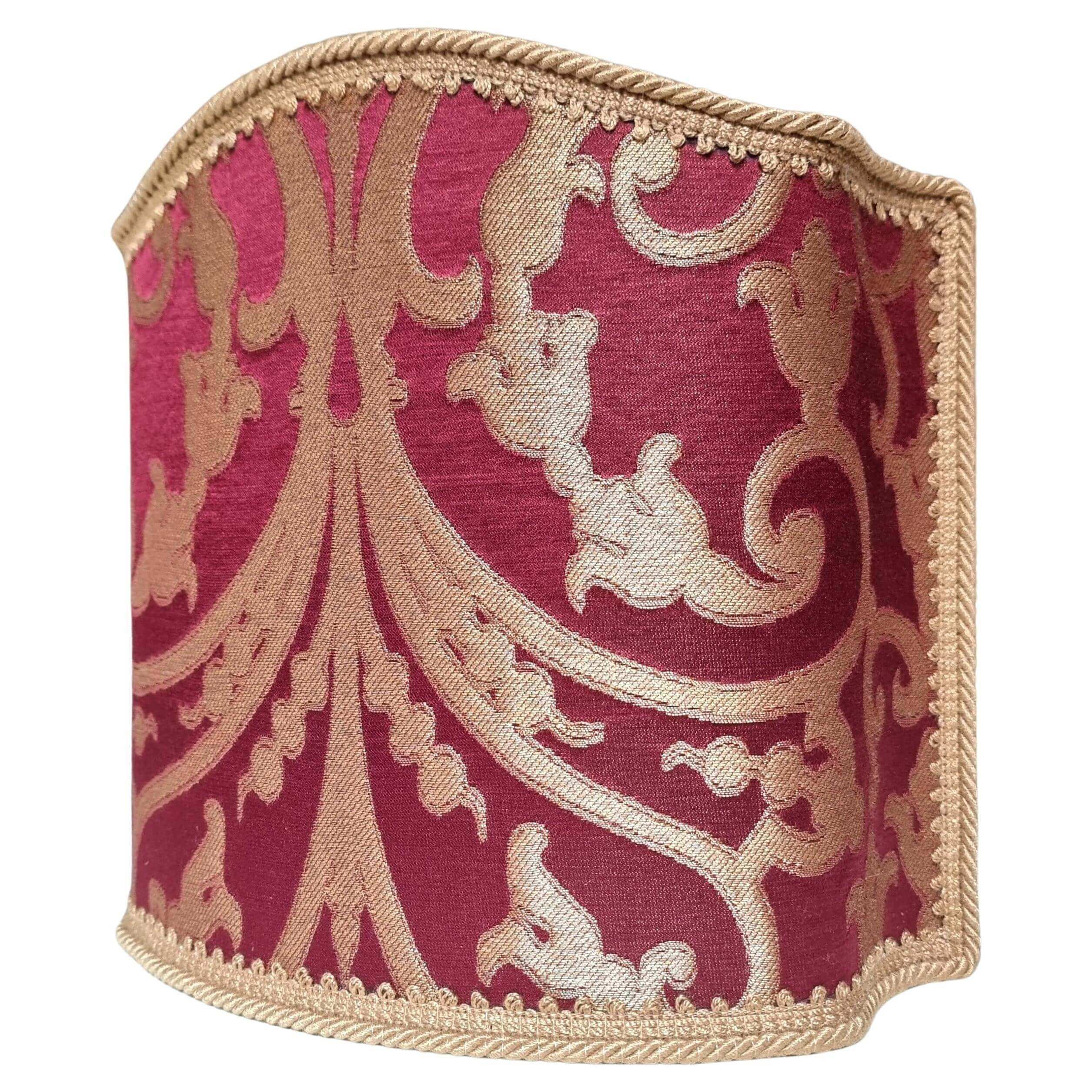 Abat Jour Fait Main Tissu Jacquard de Soie Rubelli Serlio Rouge Rubis et Or