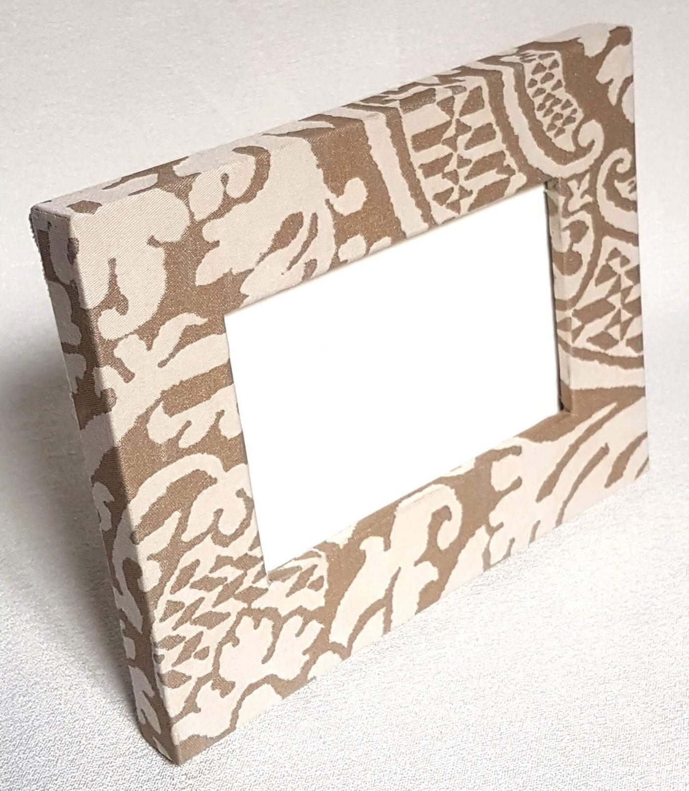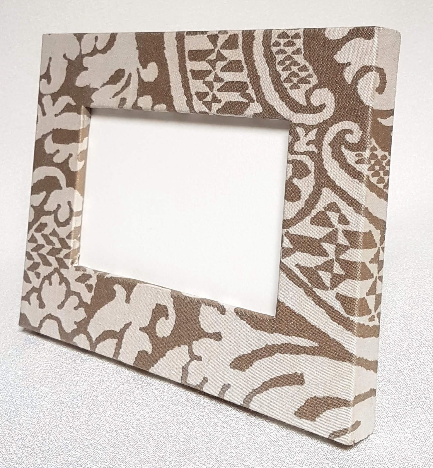 Cadre Photo à Poser Recouvert de Tissu Fortuny Orsini Ivoire et Or