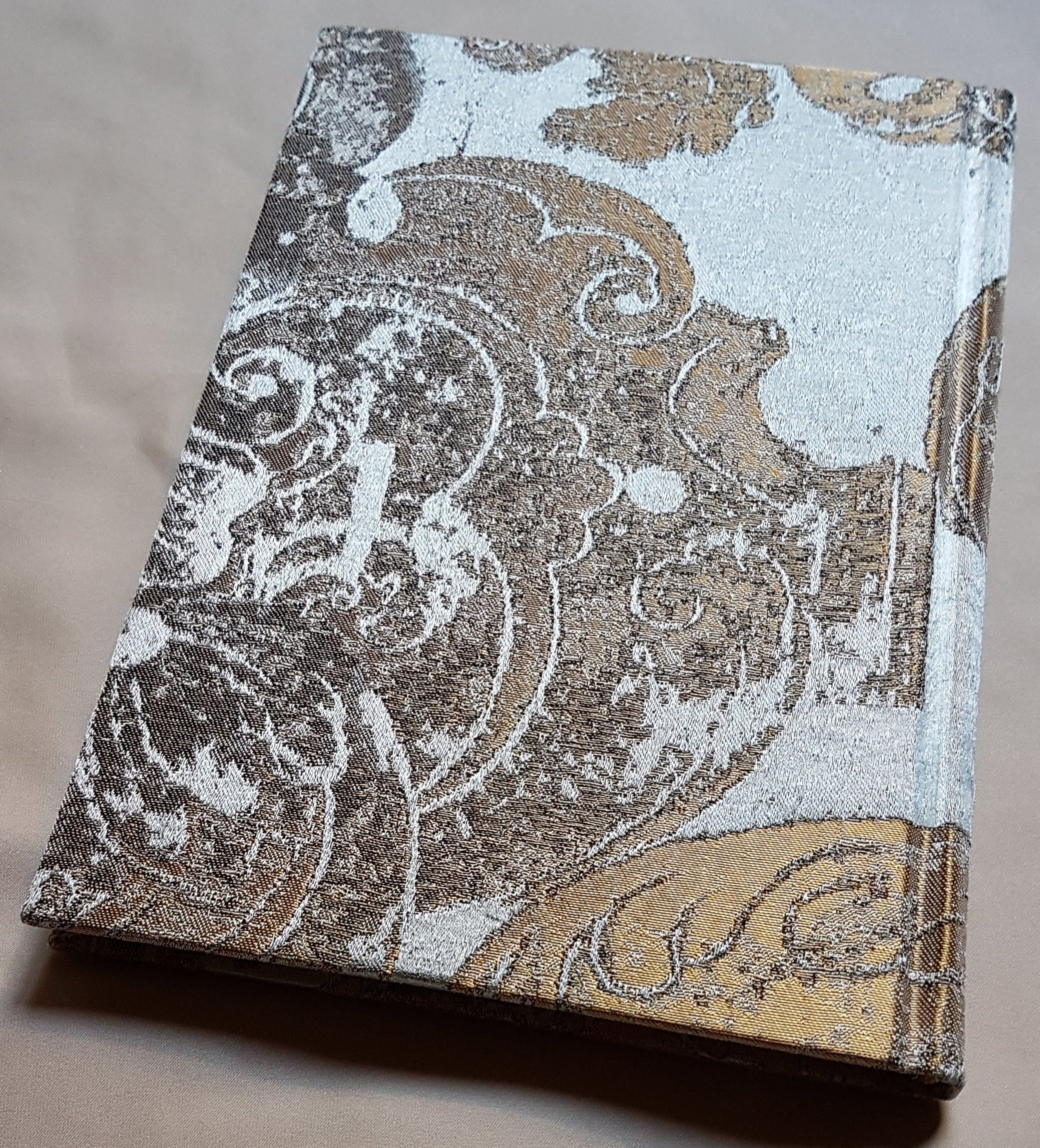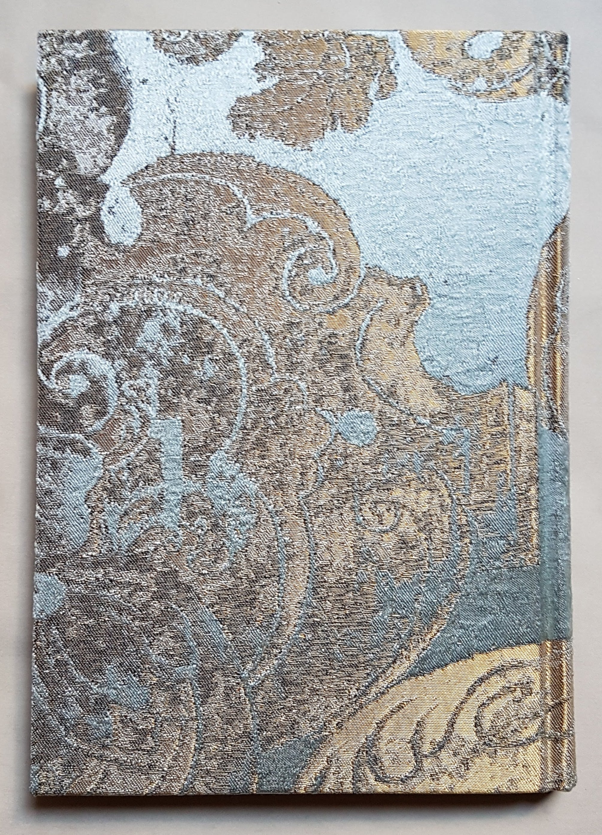 Carnet de Notes Couverture Tissu Jacquard de Soie Rubelli Gritti Bleu et Or