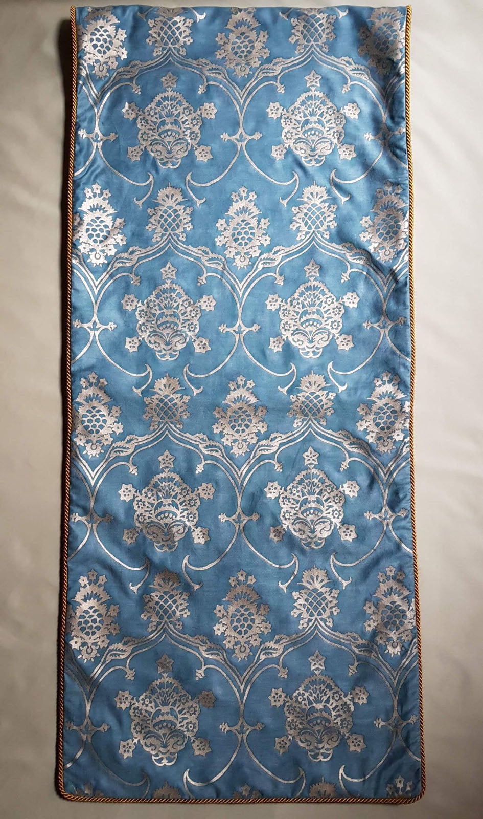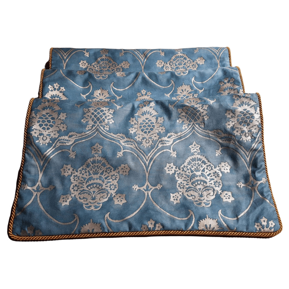 Chemin de Table Fait Main en Tissu Fortuny Veronese Bleu et Or