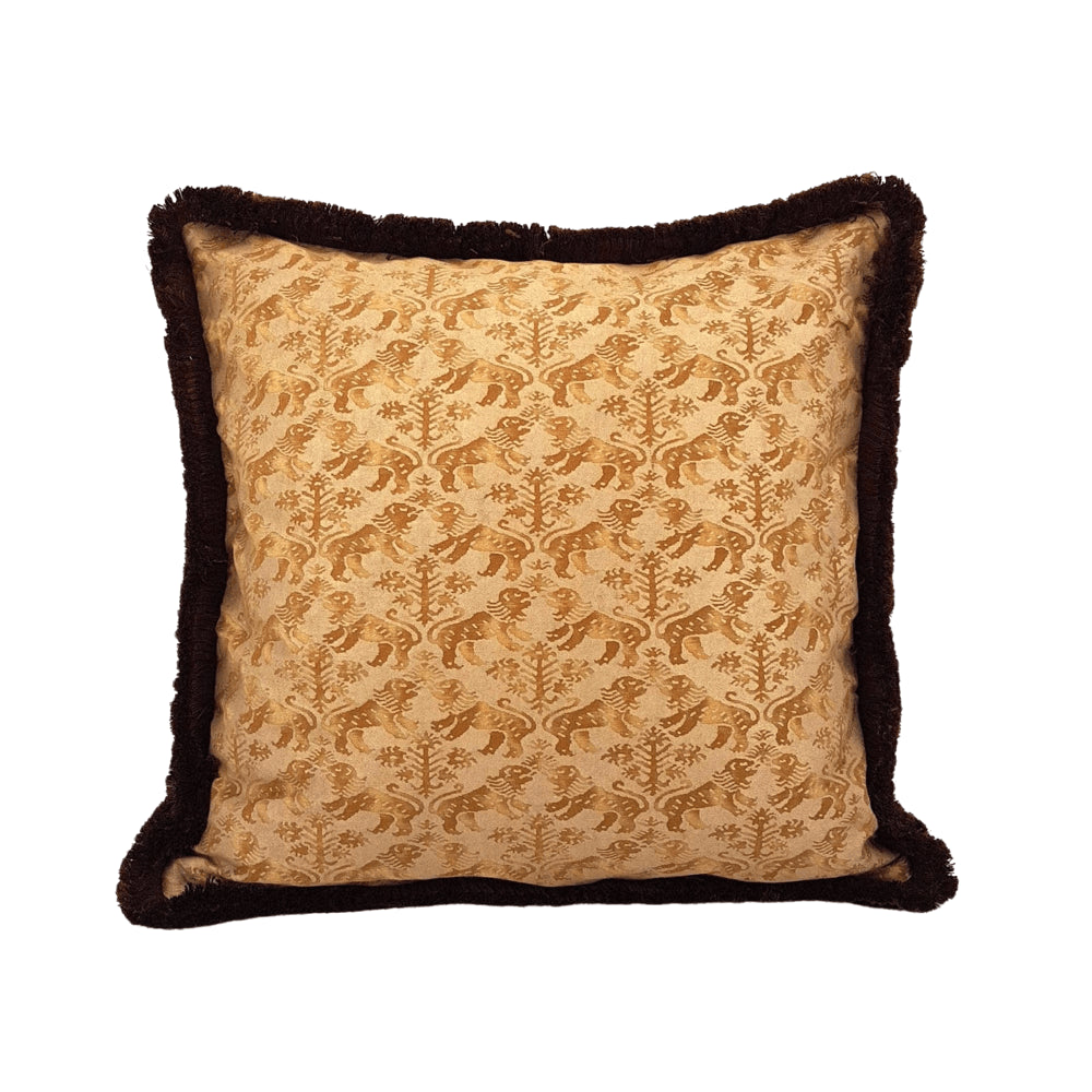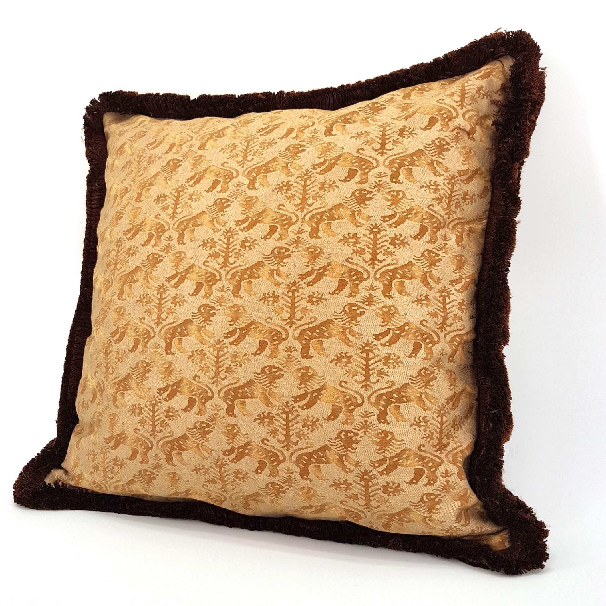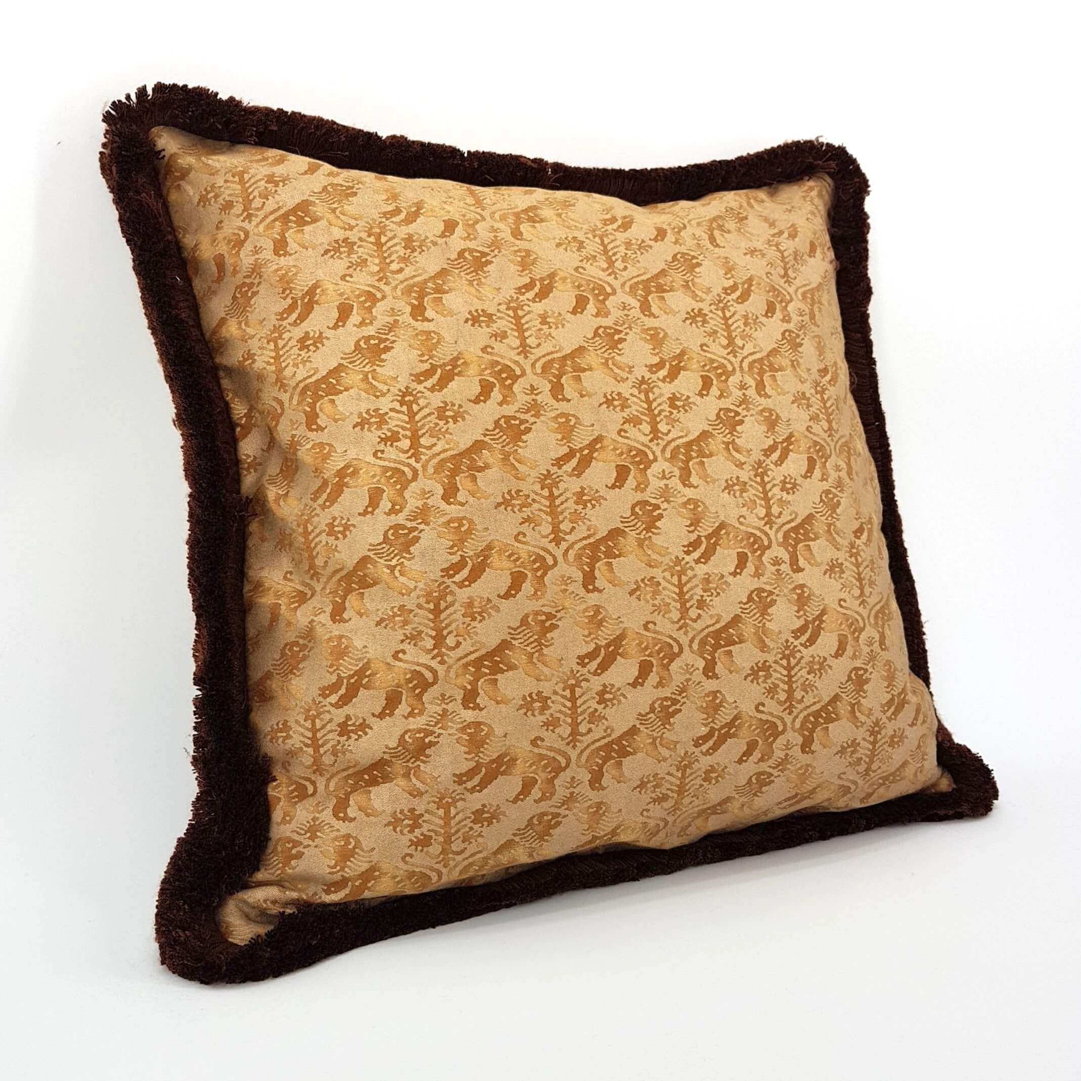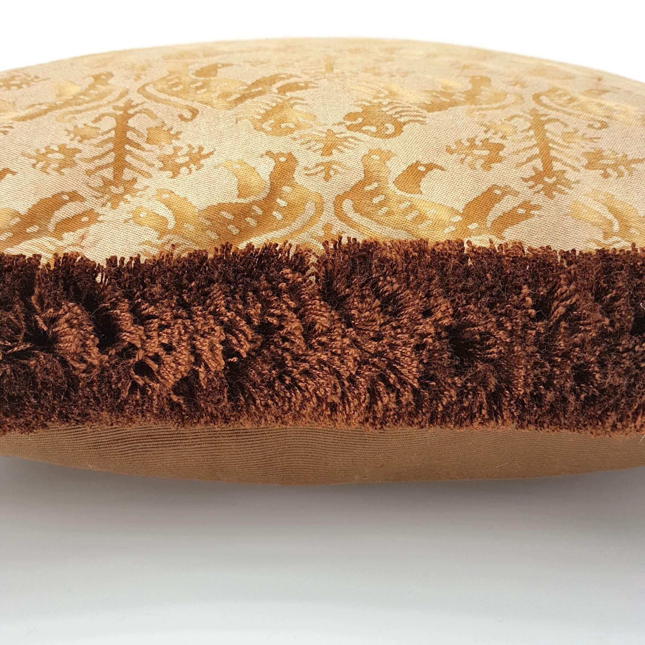 Housse de Coussin avec Frange Fait Main en Tissu Fortuny Richelieu Marron et Or