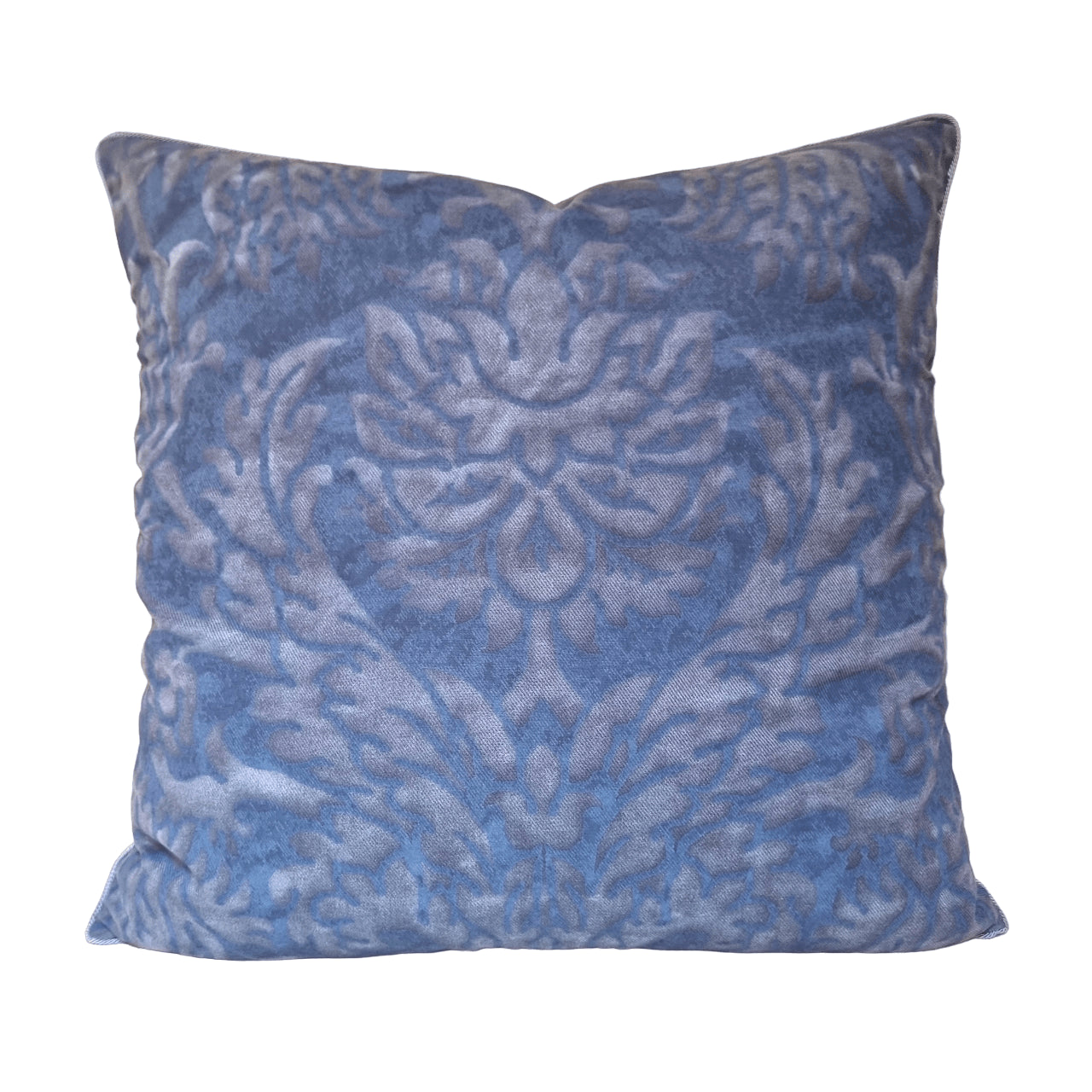 Housse de coussin en tissu Fortuny Barberini couleur bleu, face arrière en tissu Rubelli