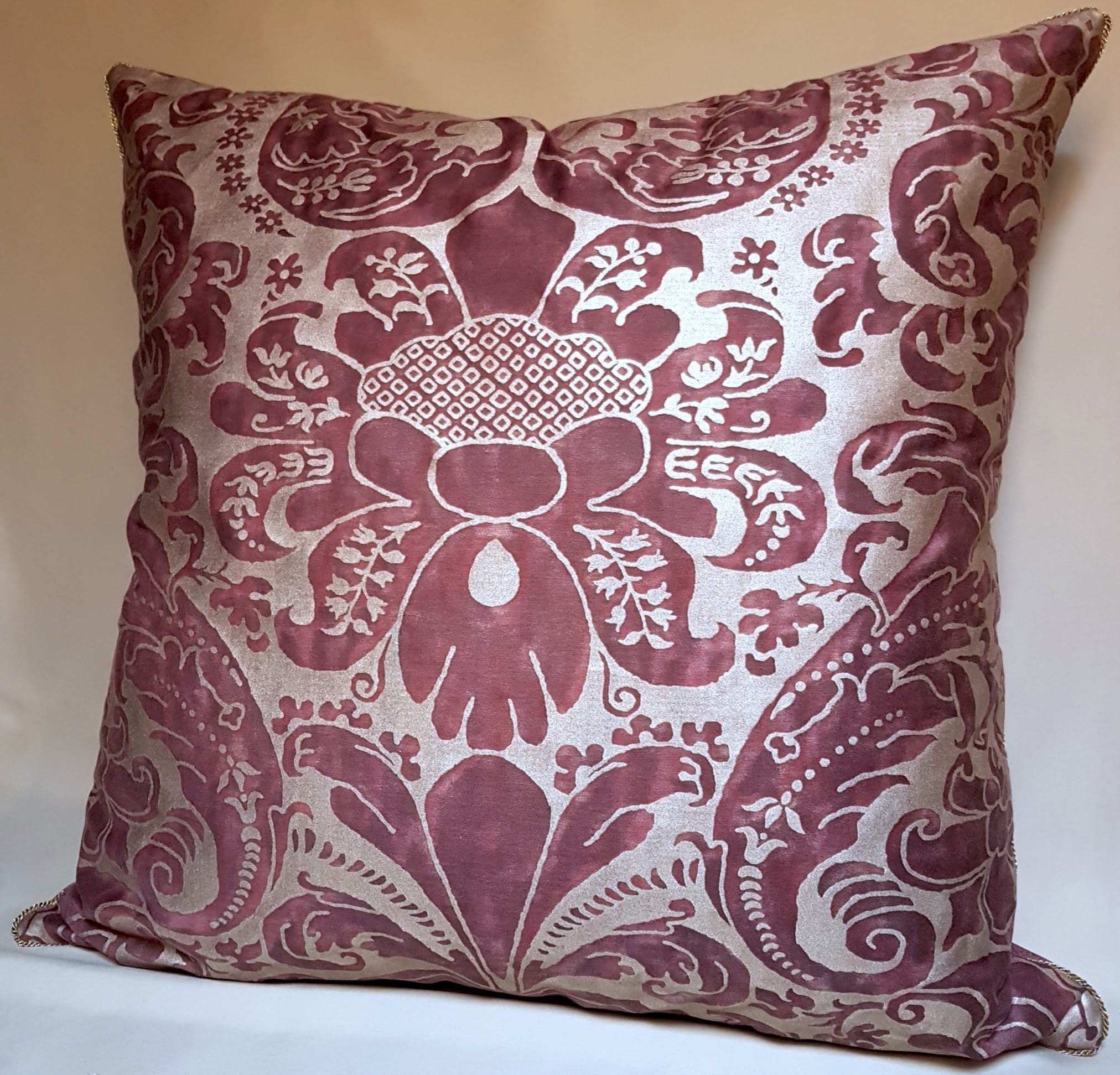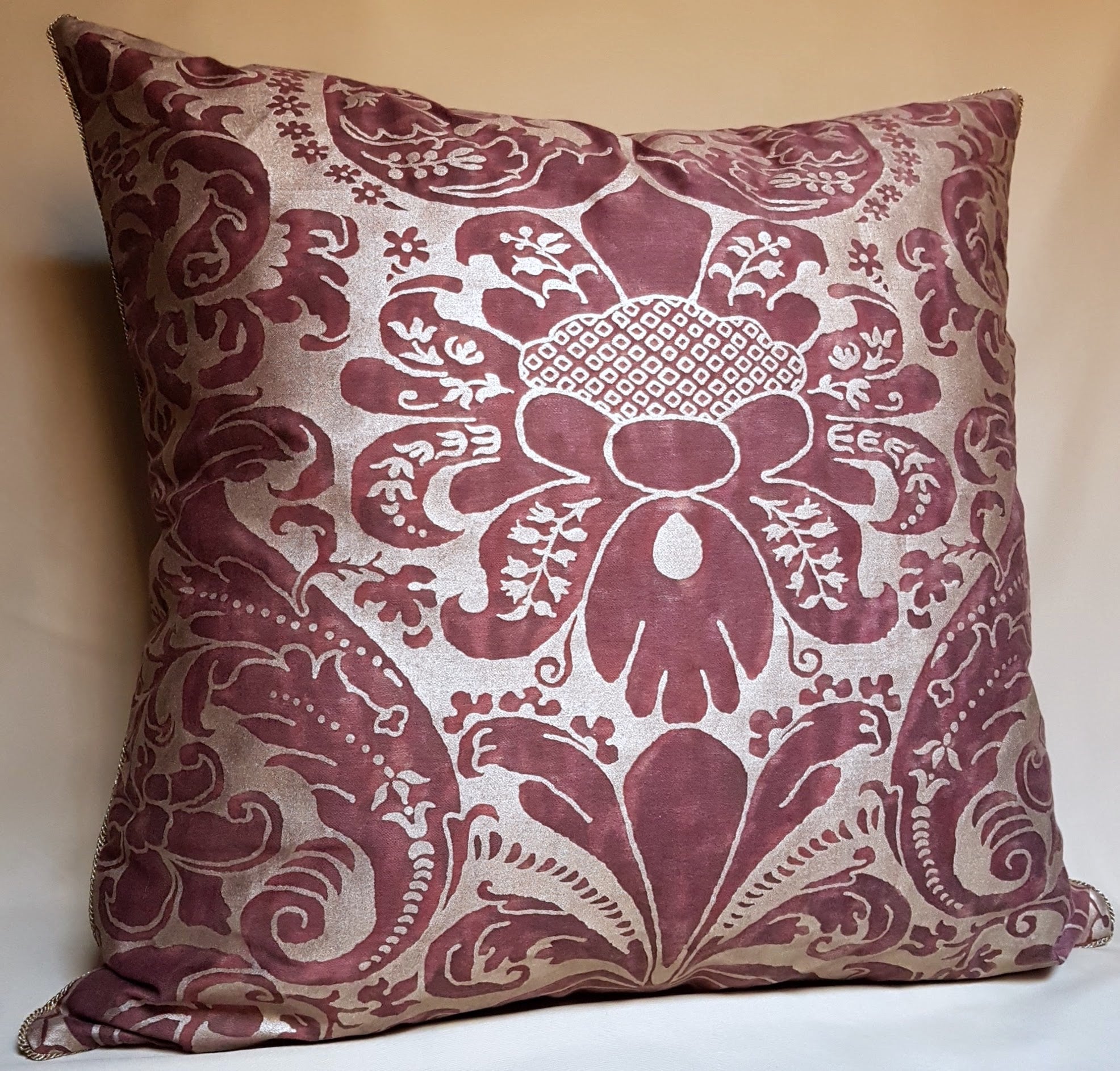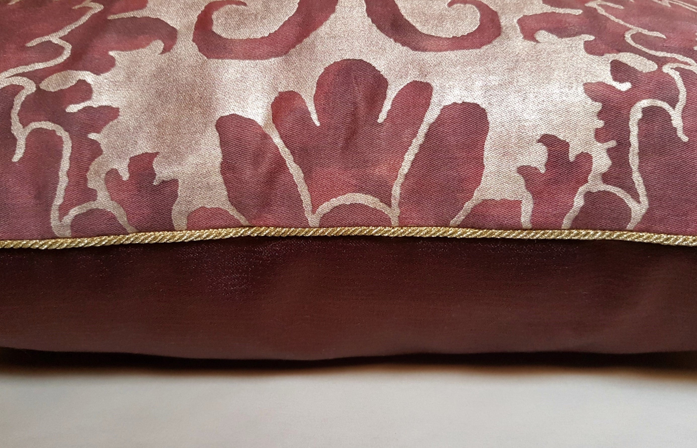 Housse de Coussin Fait Main en Tissu Fortuny Caravaggio Bordeaux et Or