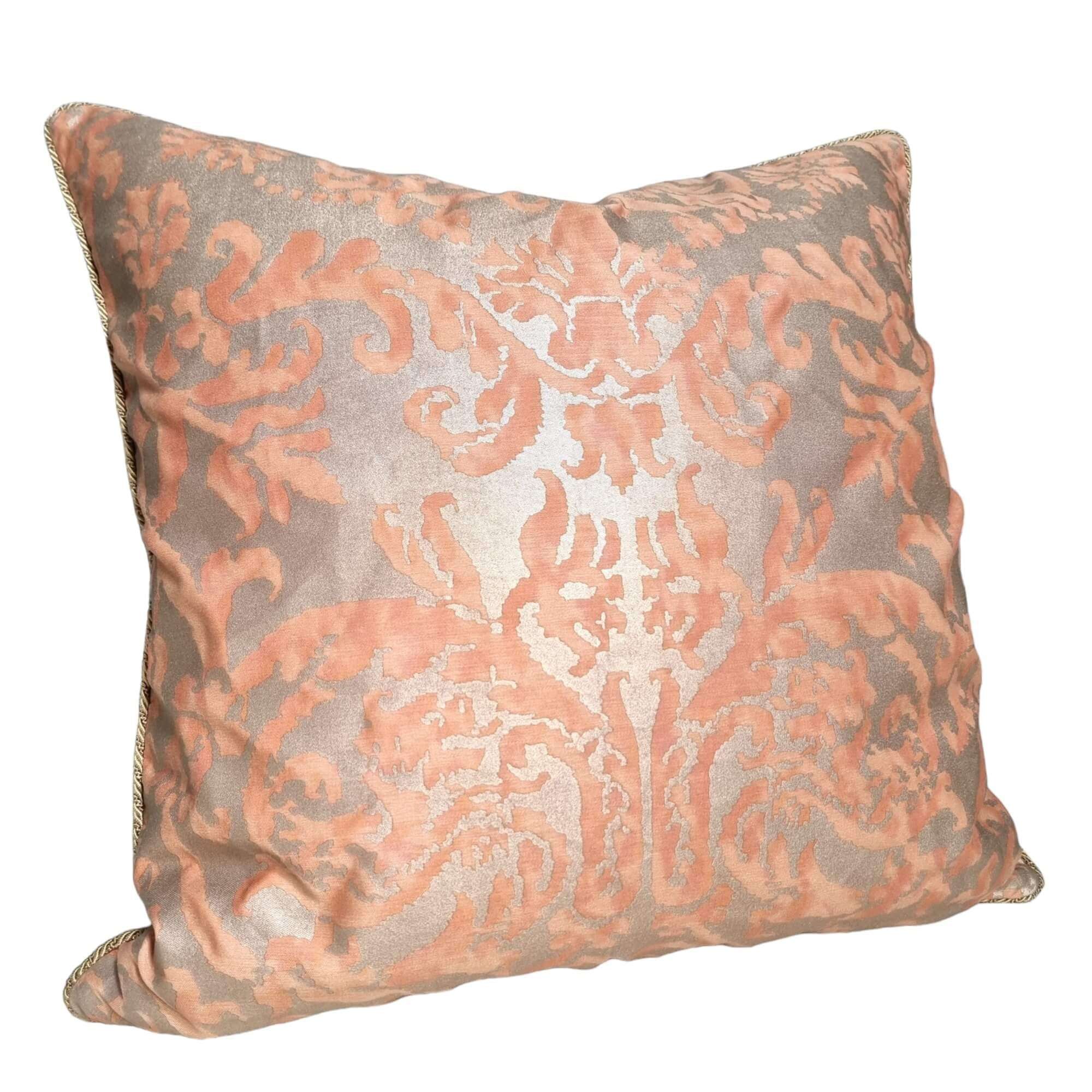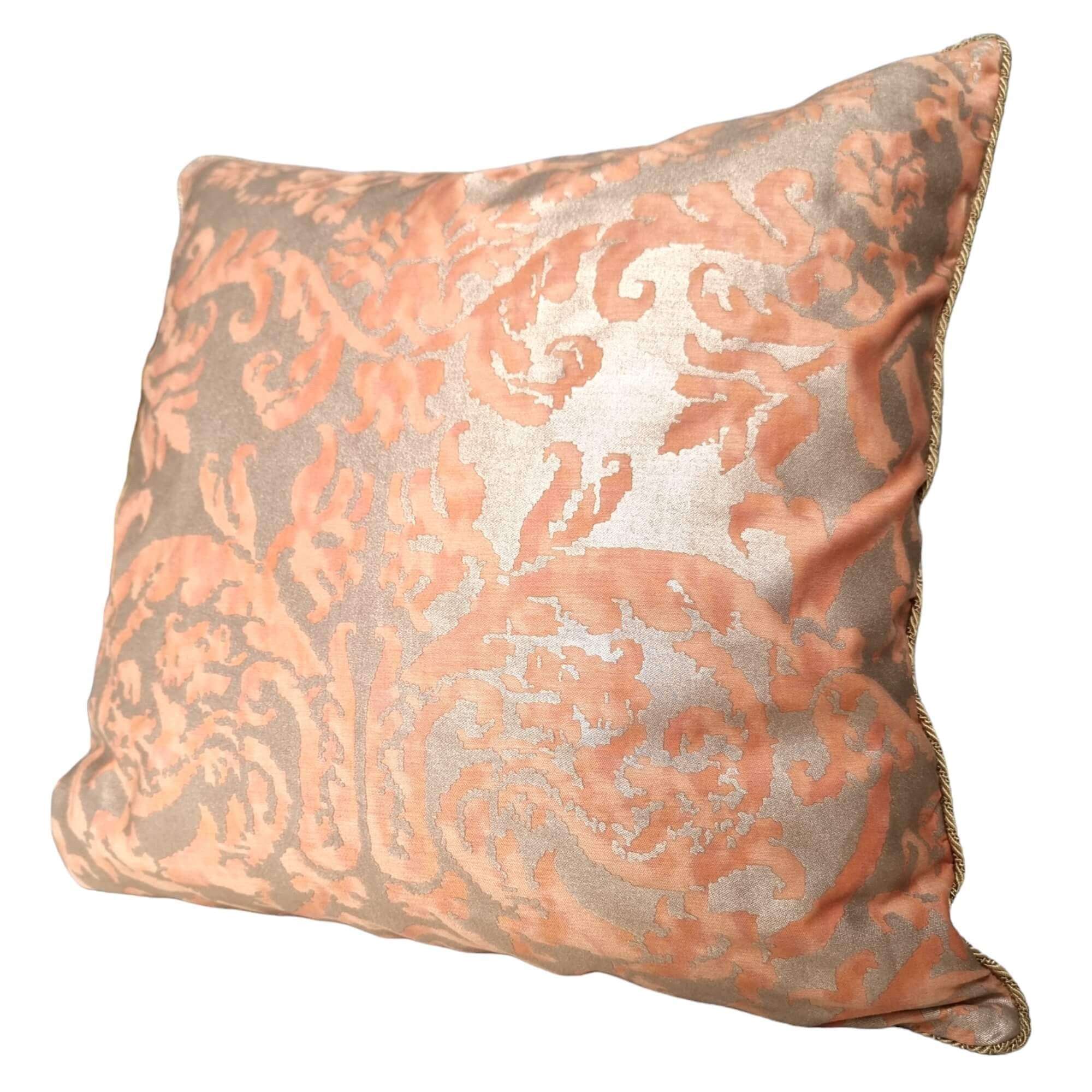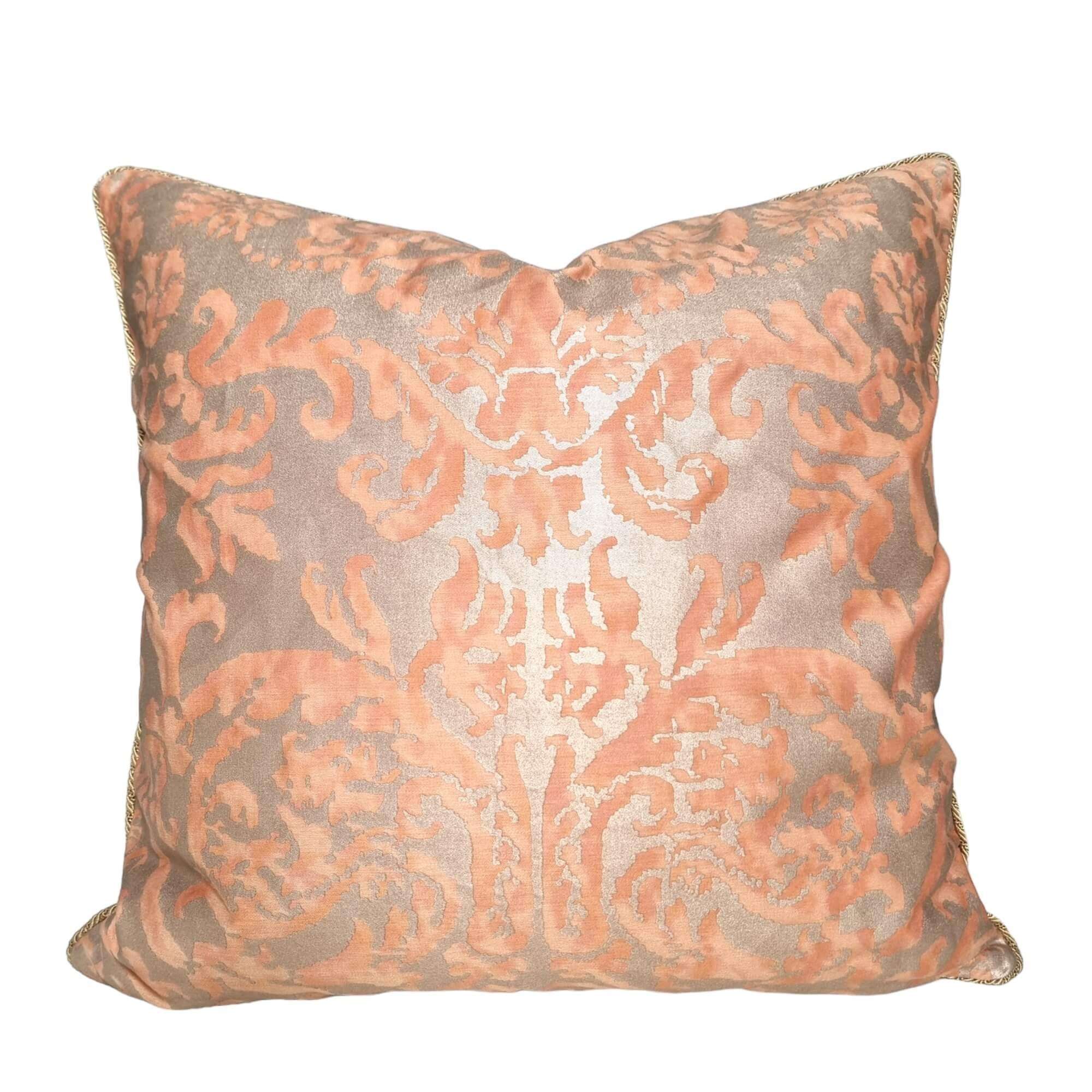 Housse de Coussin Fait Main en Tissu Fortuny Farnese Orange et Or