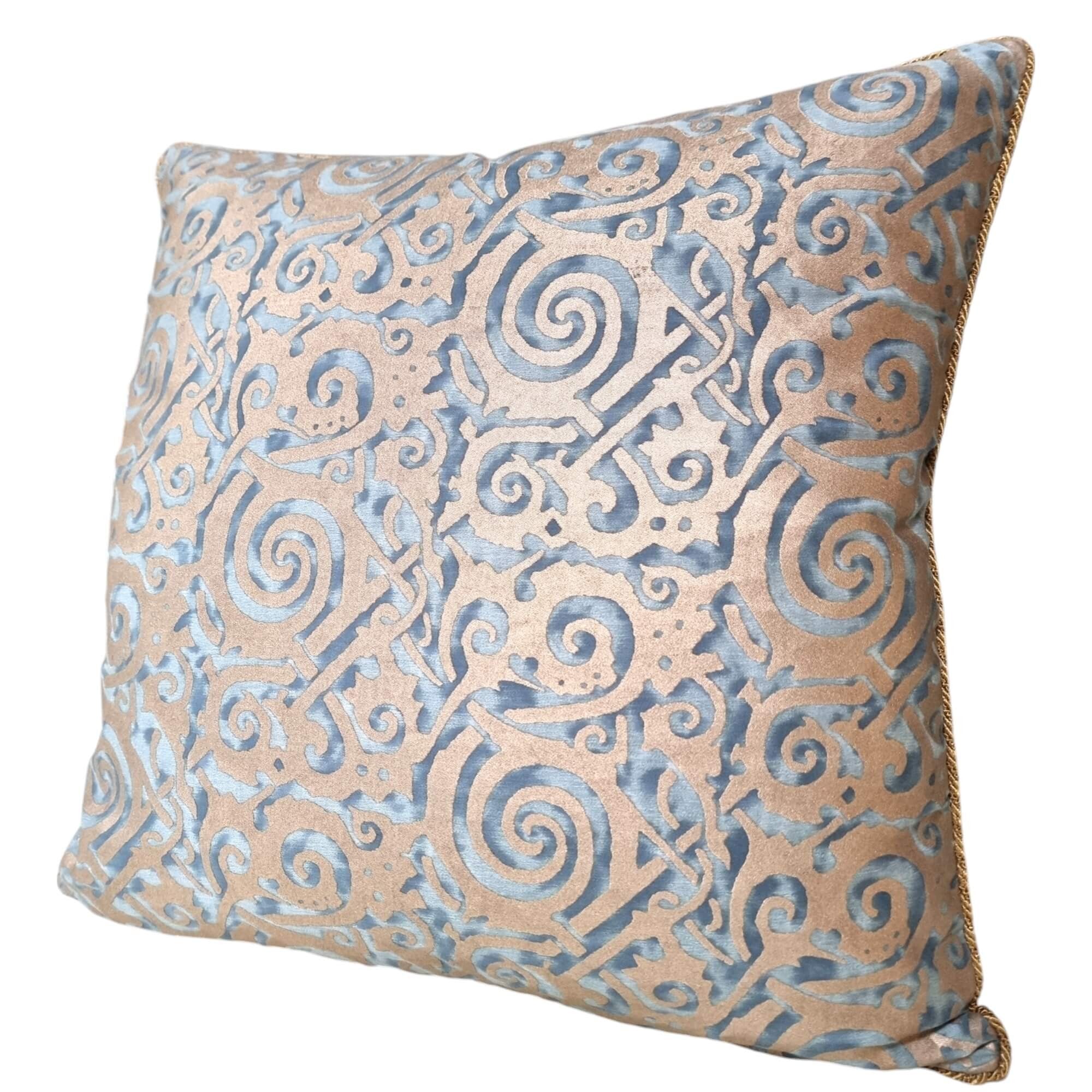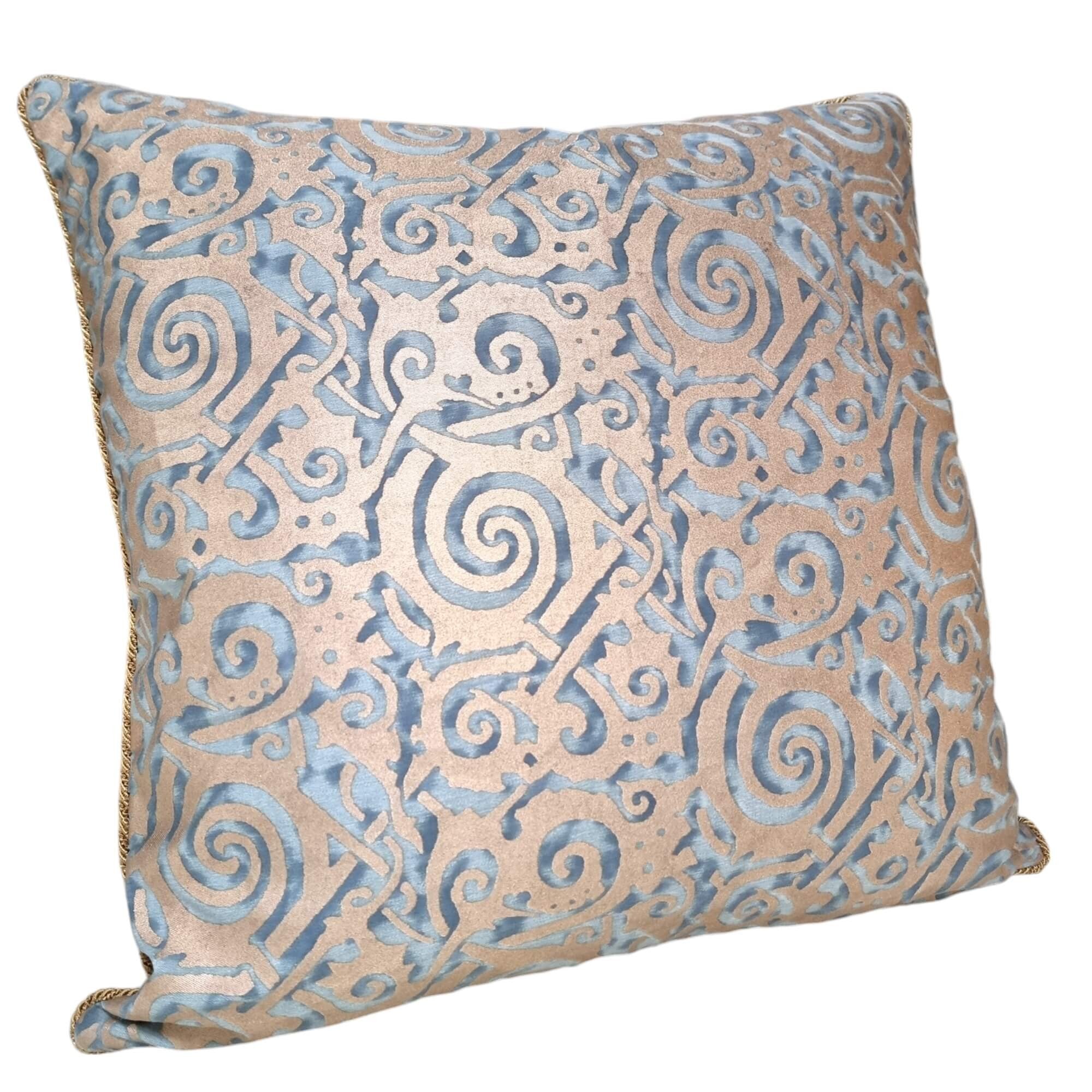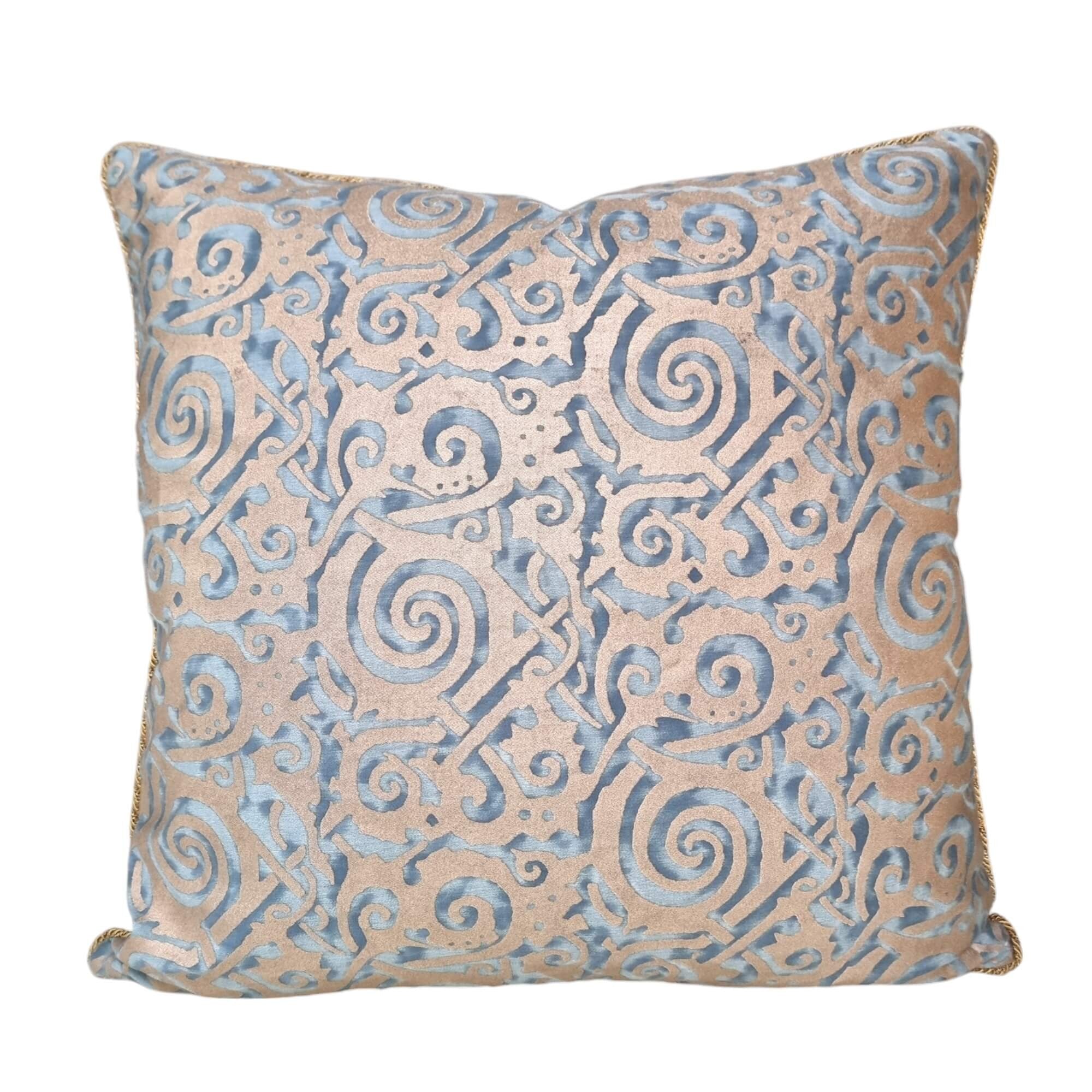 Housse de Coussin Fait Main en Tissu Fortuny Maori Bleu et Or