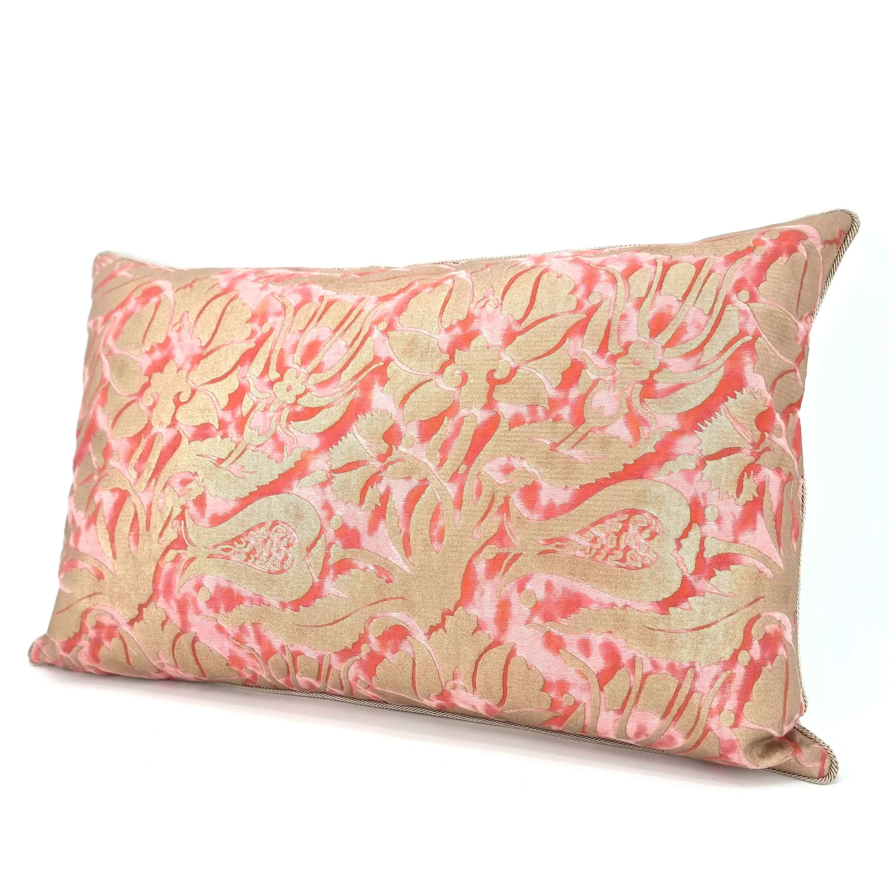 Housse de Coussin Fait Main en Tissu Fortuny Melagrana Rouge Corail et Or