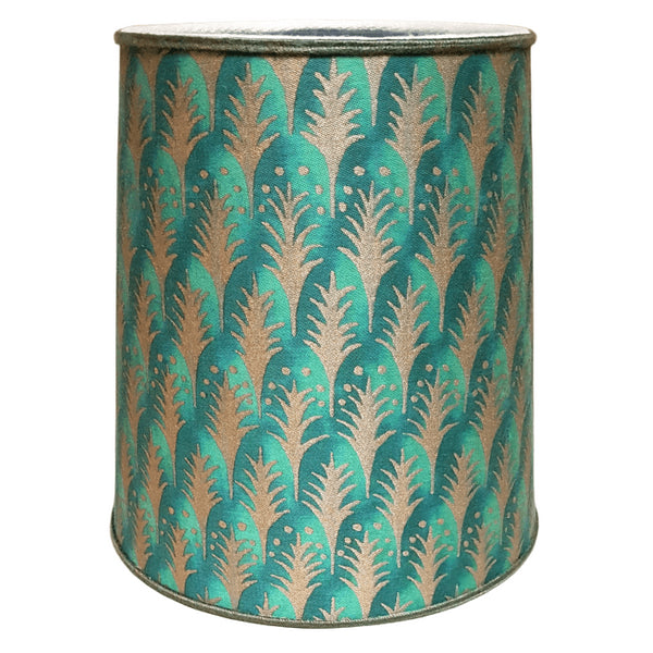 Paralume Cilindro Tessuto Fortuny Piumette Verde Smeraldo e Oro