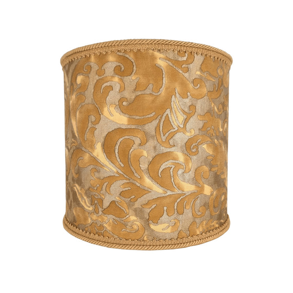 Paralume Cilindrico in Tessuto Fortuny Solimena Pesca e Oro