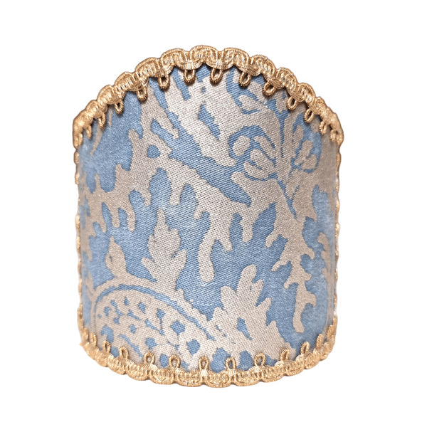 Paralume con Attacco a Molla in Tessuto Fortuny Sevres Azzurro e Oro