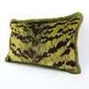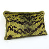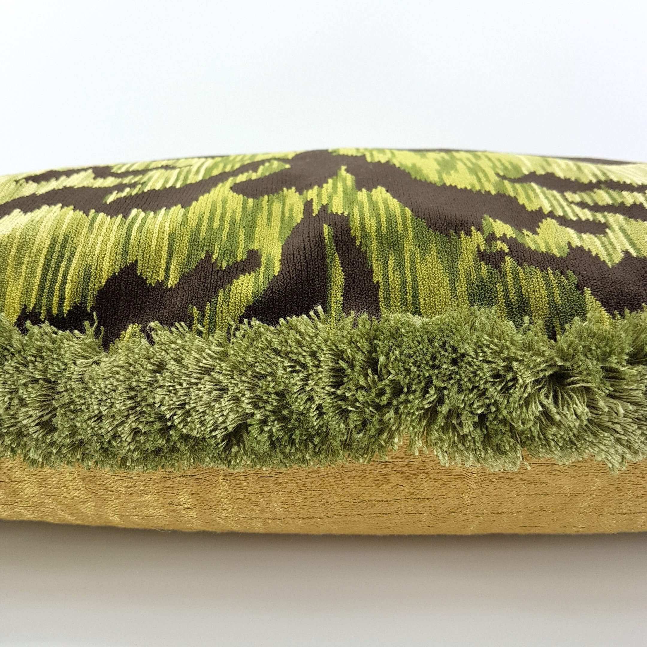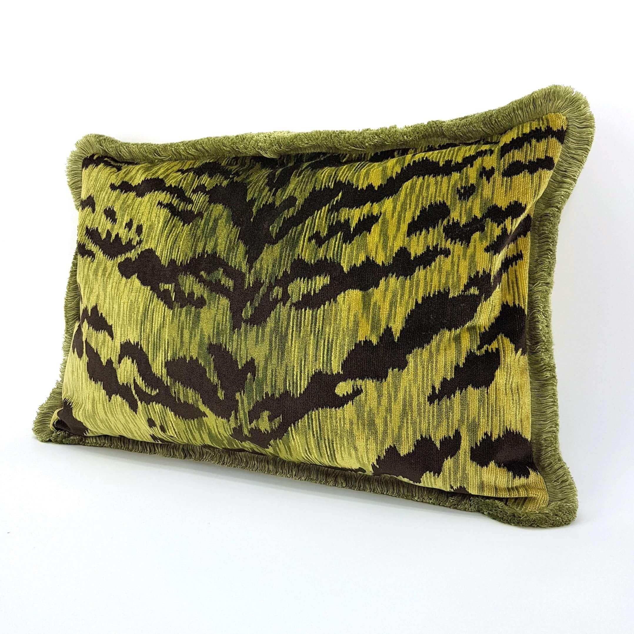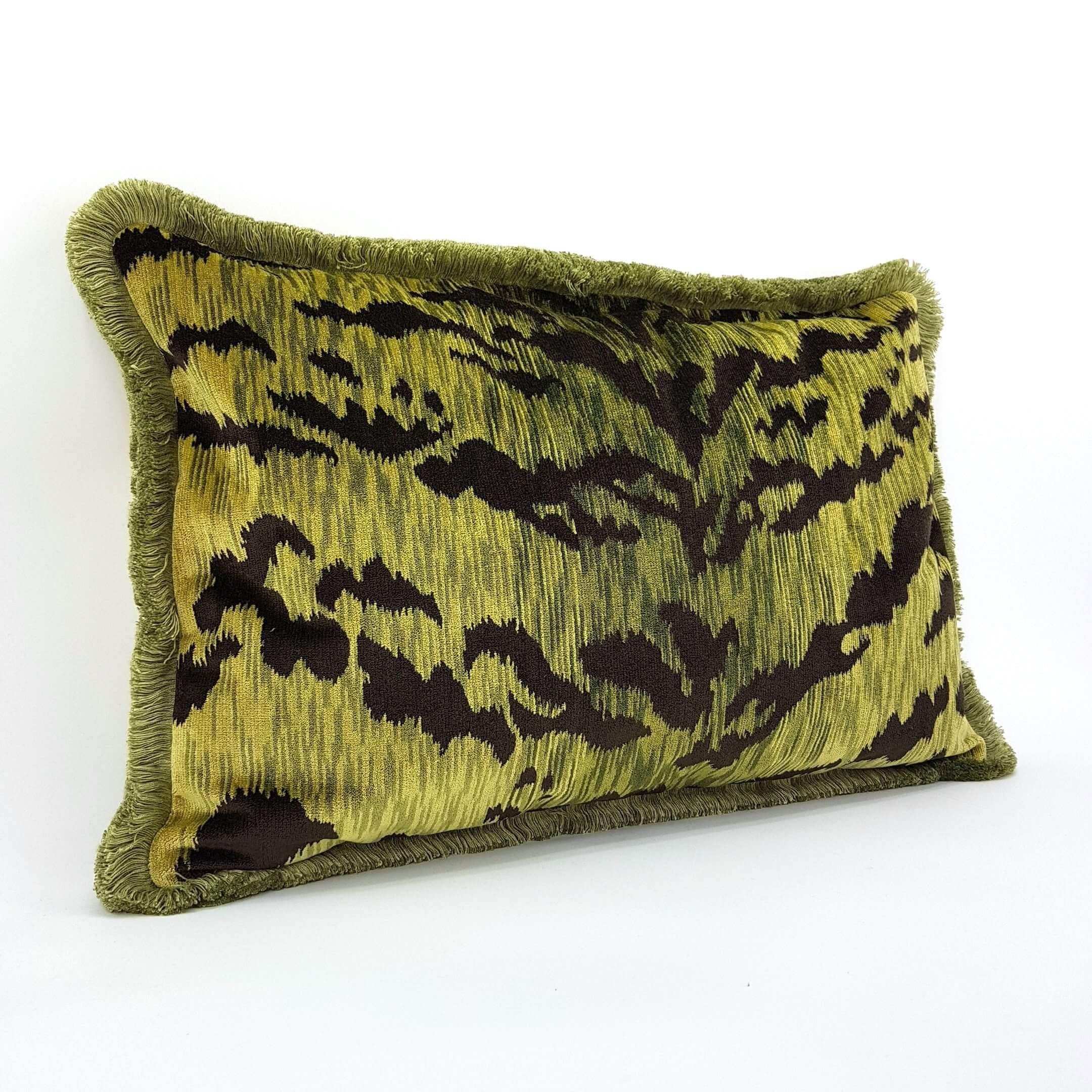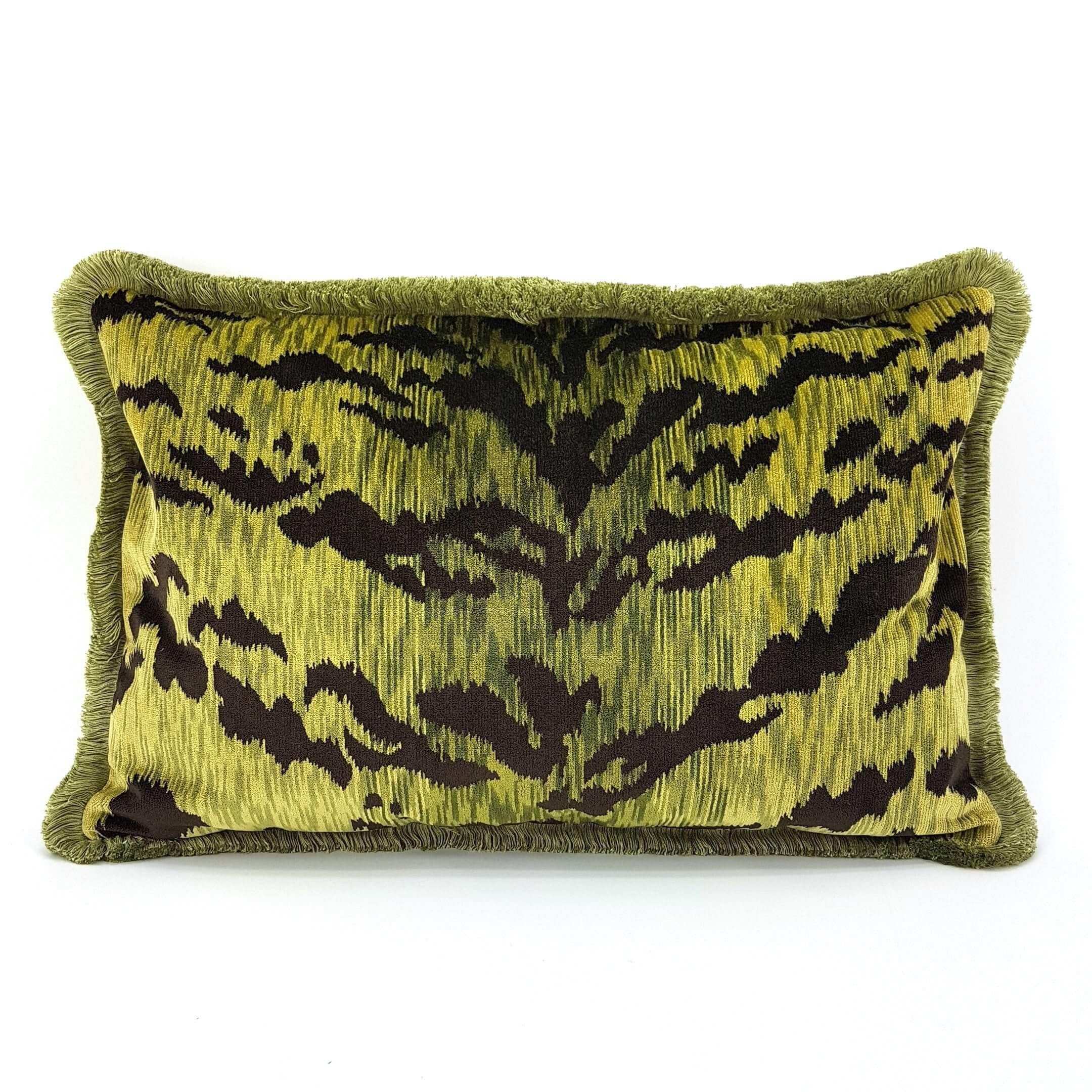 Brush Fringe Handmade Decorative Pillow Made With Luigi Bevilacqua Green Shiné Velvet Tigre Pattern