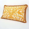 Handmade Decorative Pillow Made With Fortuny Fabric – Yellow & White Uccelli Pattern With Brush Fringe