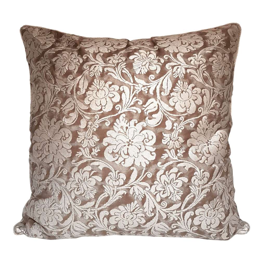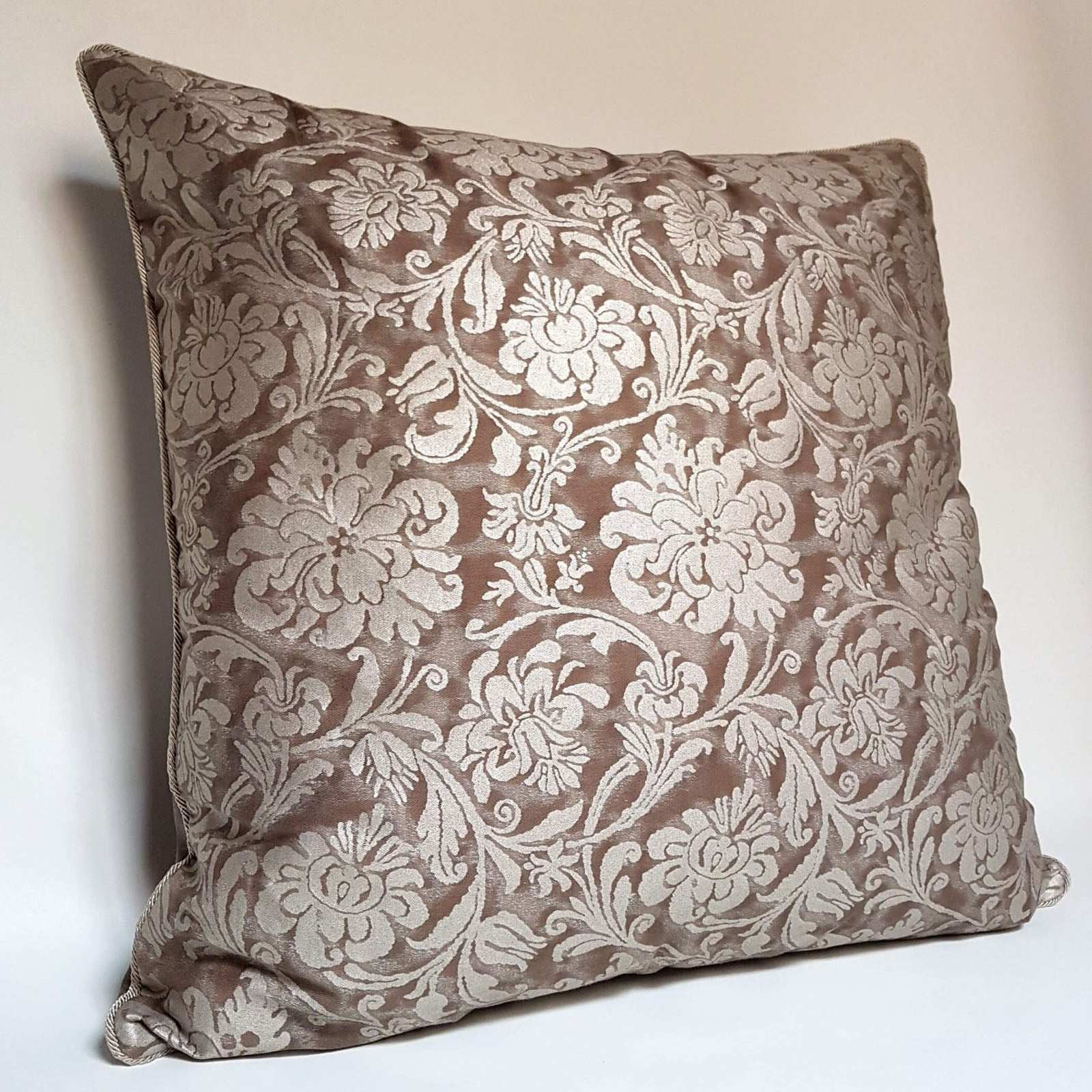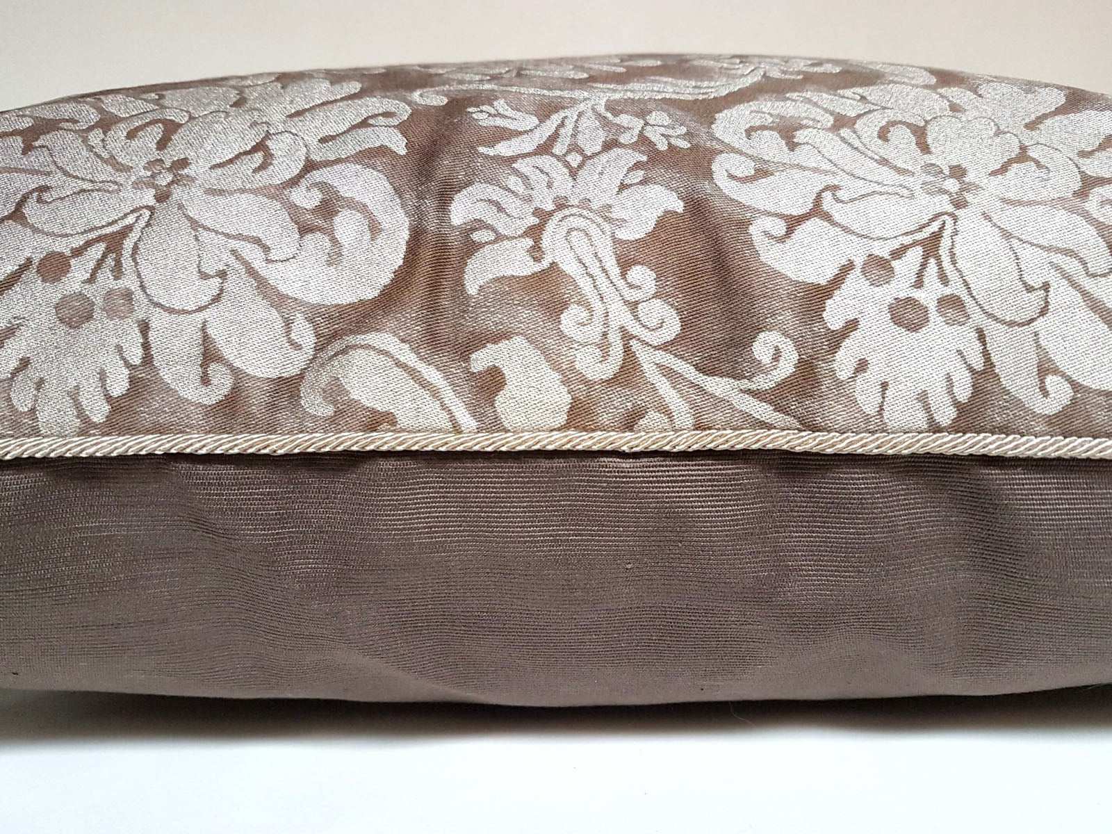 Handmade Decorative Pillow Made With Fortuny Fabric – Grey, Brown & Silvery Gold Cimarosa Pattern