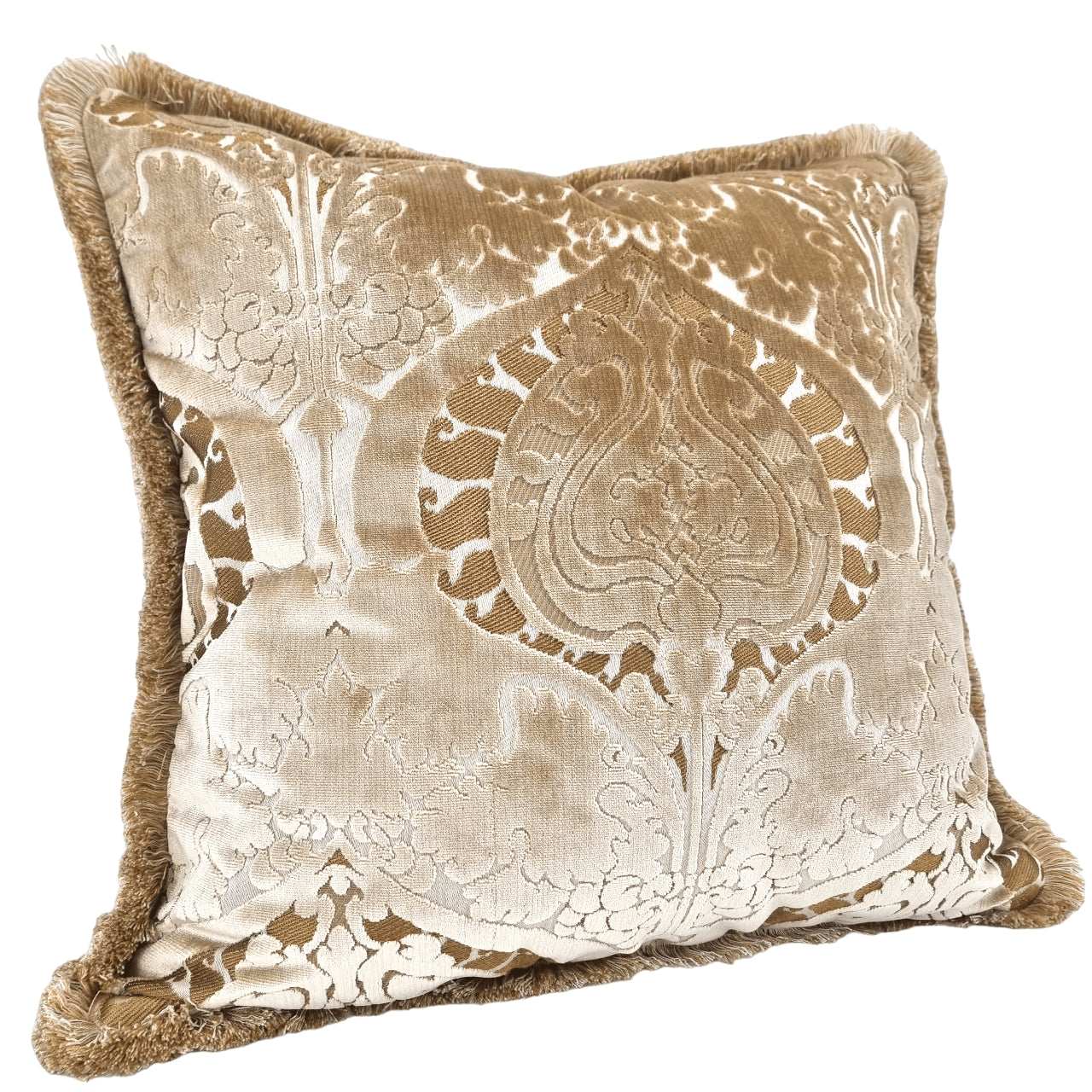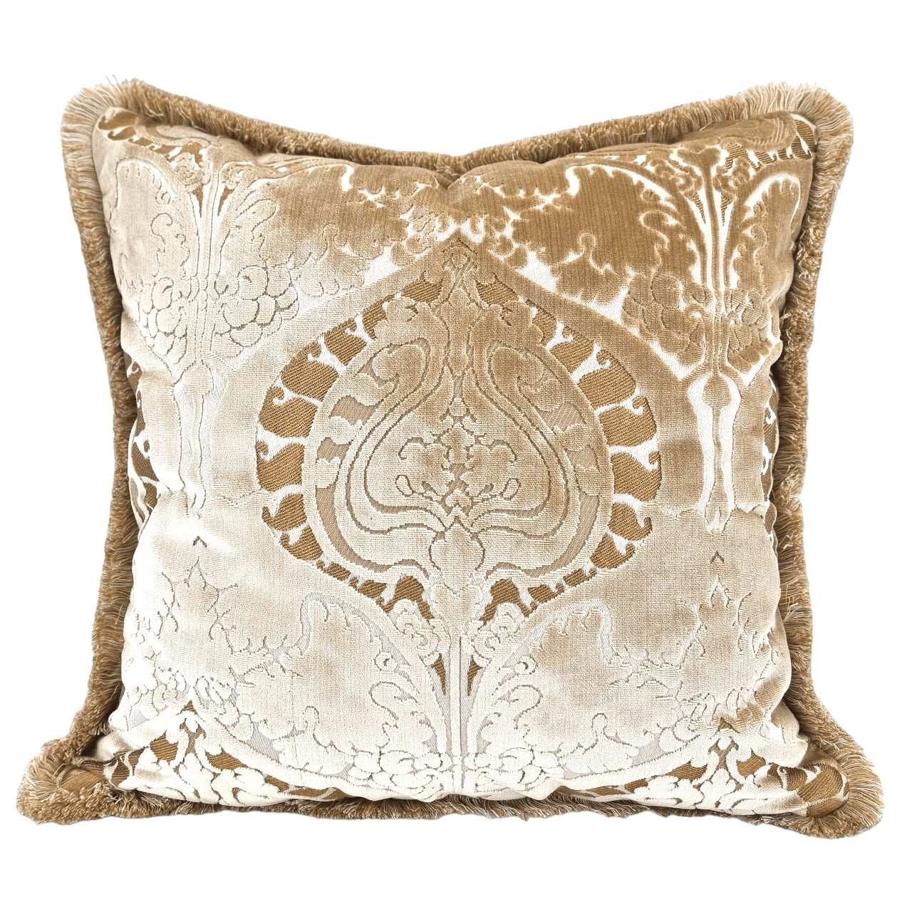 Handmade Decorative Pillow Made With Luigi Bevilacqua Ivory Silk Heddle Velvet Torcello Pattern