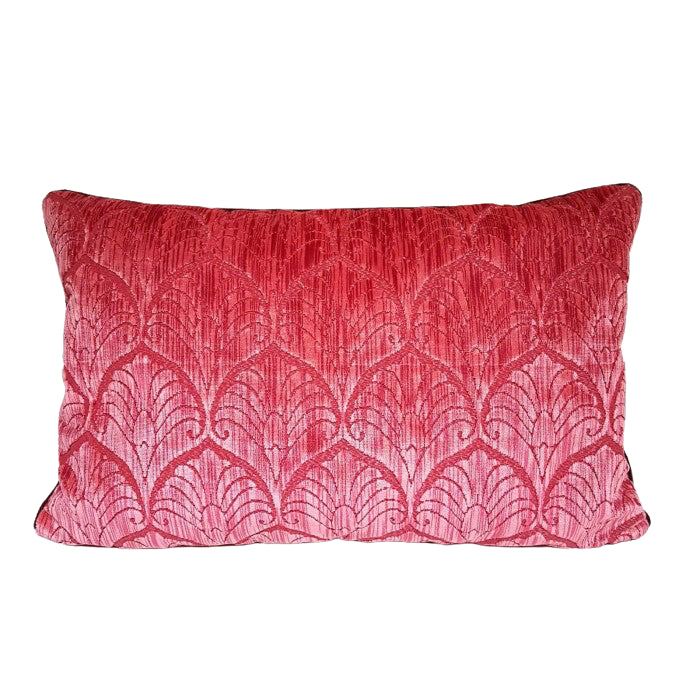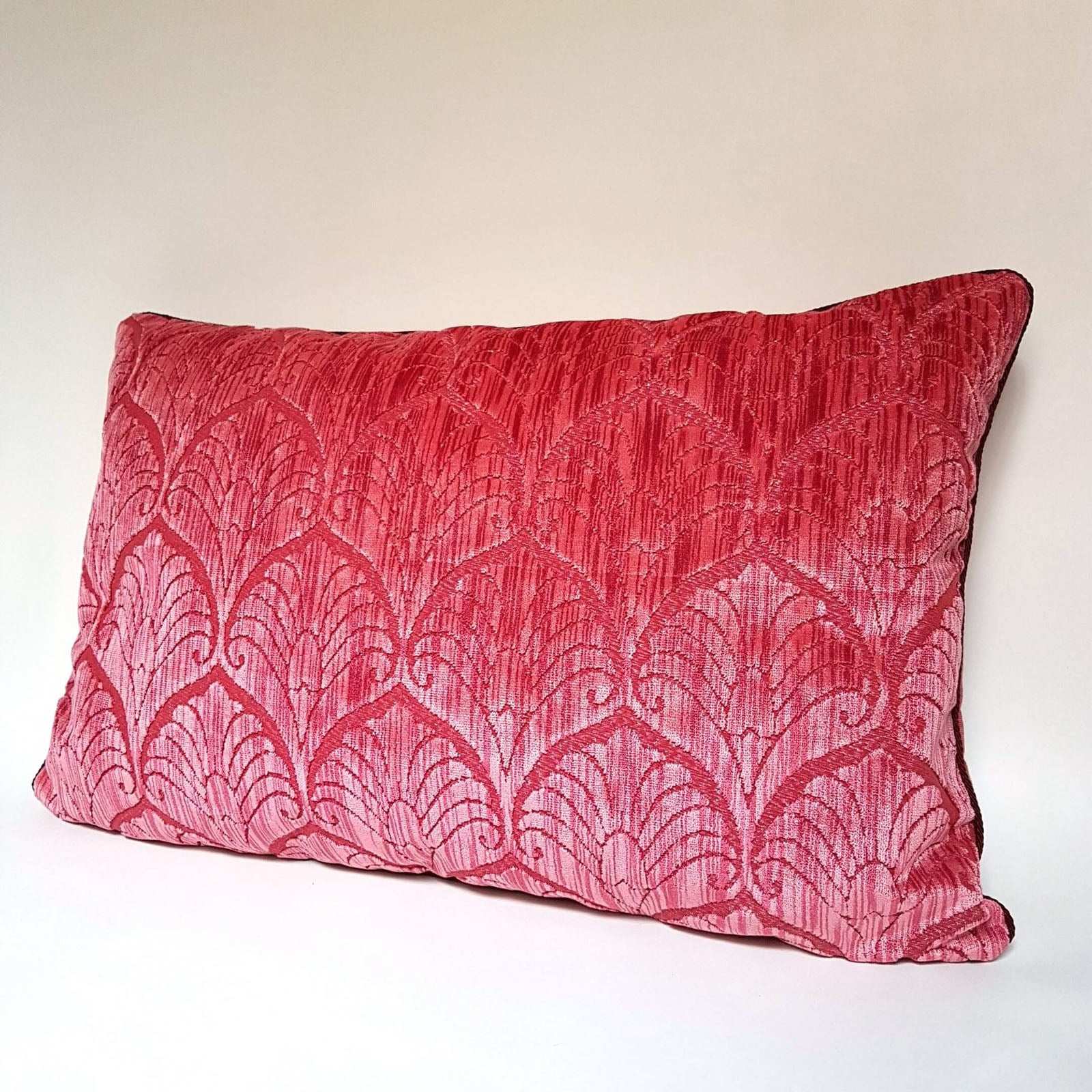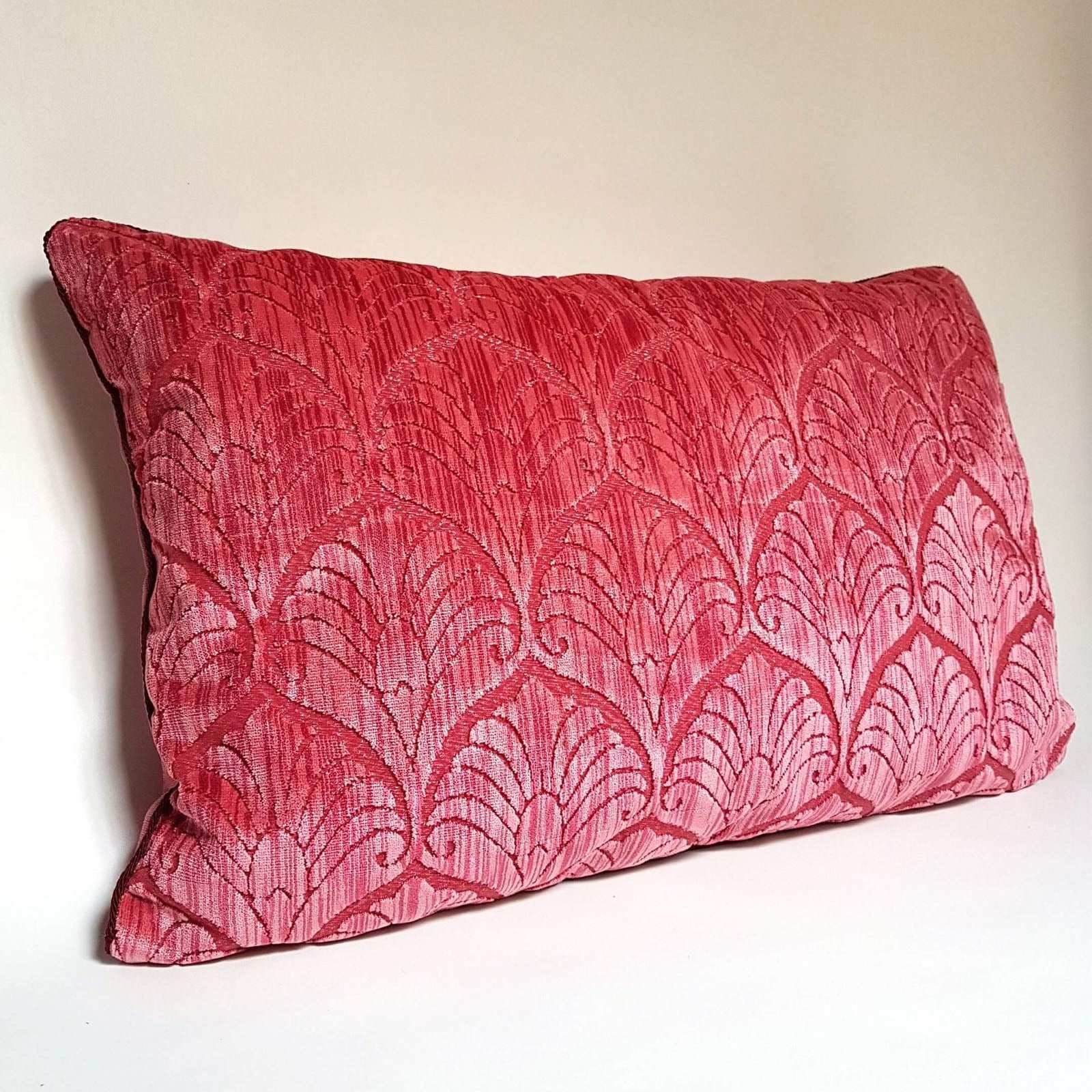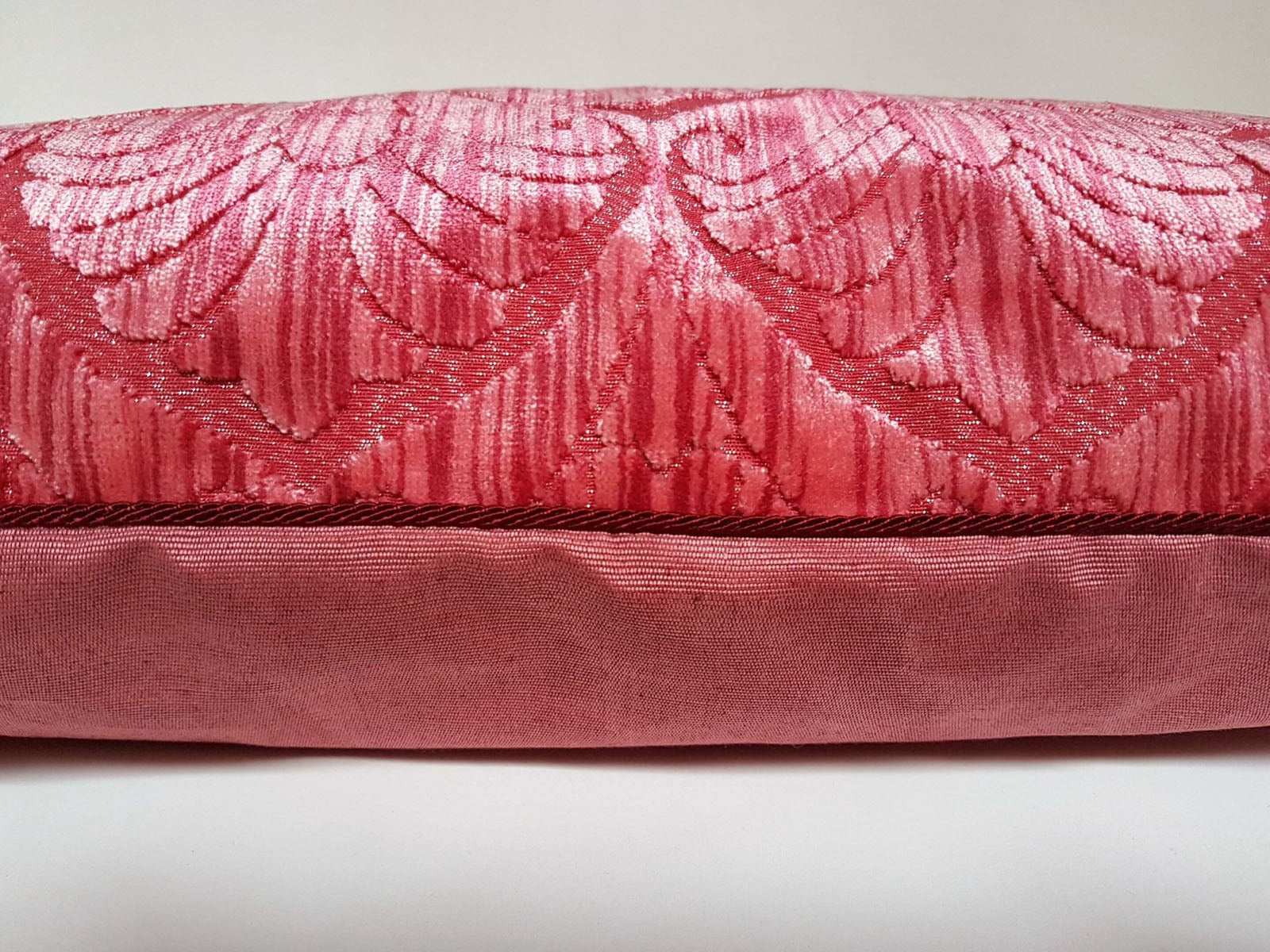 This customizable decorative pillow case is handmade using Luigi Bevilacqua velvet - Palmyra pattern - in hibiscus color, the back of the pillow is made with moiré Rubelli fabric