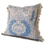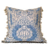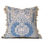 This customizable double sided pillow cover is handmade using Fortuny fabric Nicolo pattern in blue & silvery gold color finished with blue and gold tassel trim