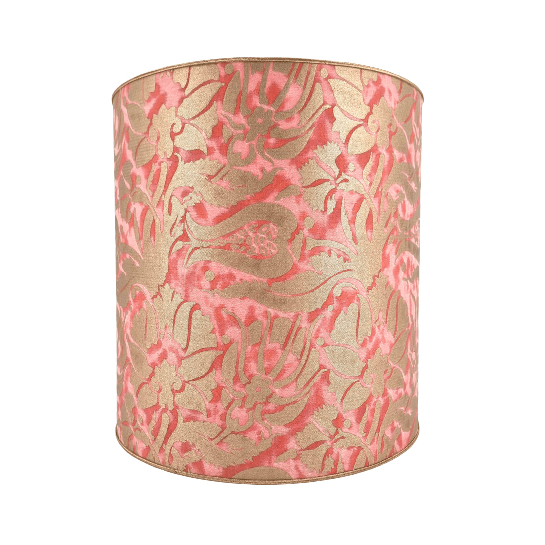Handmade Drum Cylinder Lampshade - Fortuny Fabric Coral Haze & Silvery Gold Melagrana Pattern