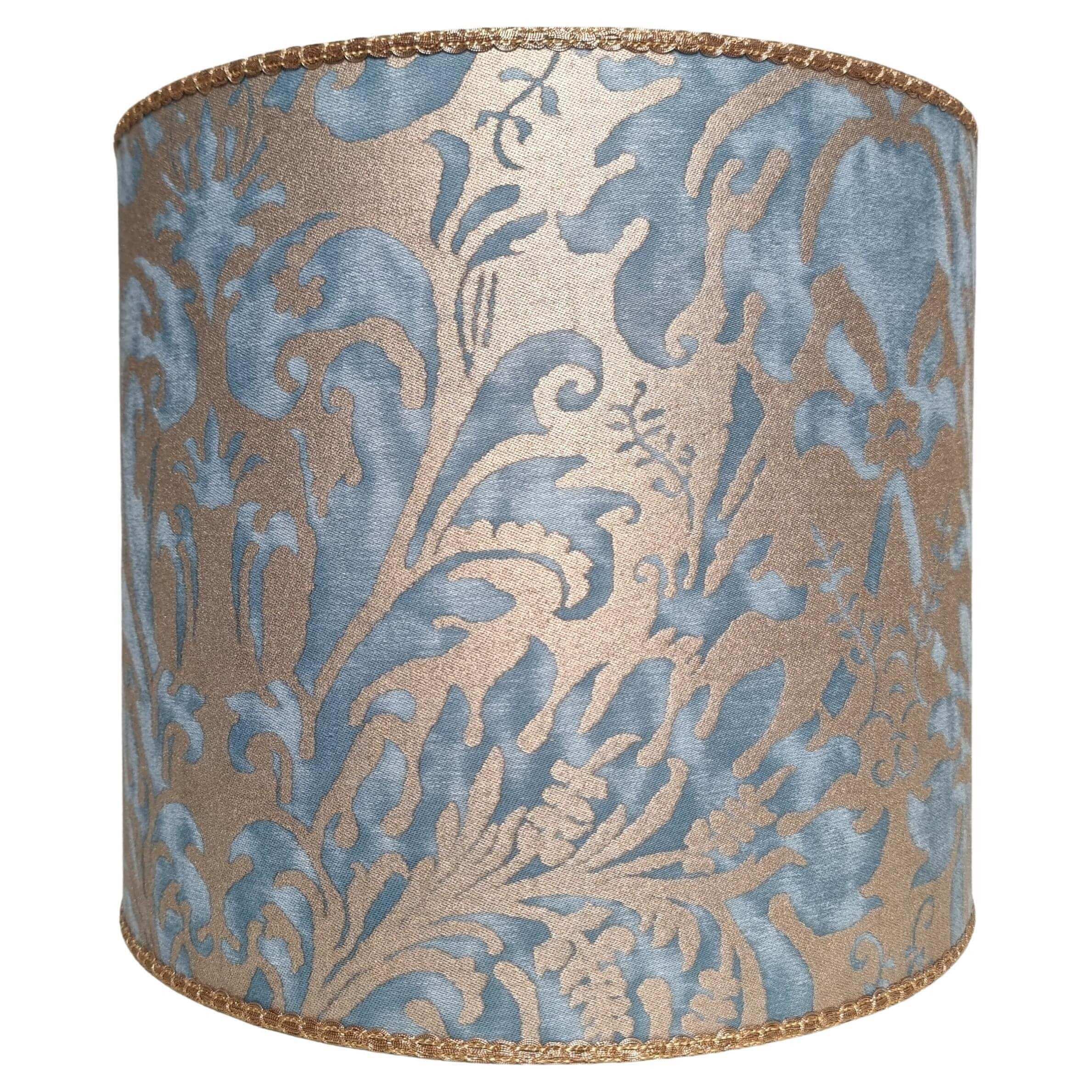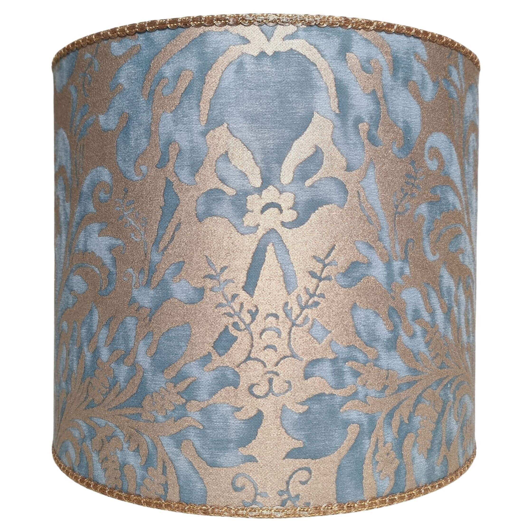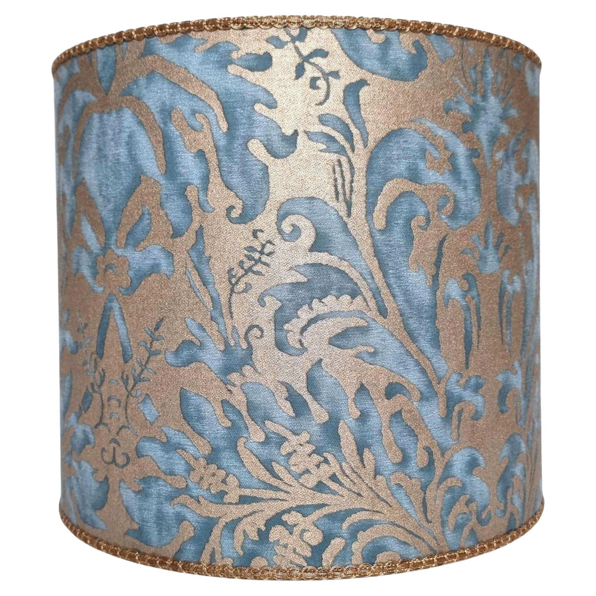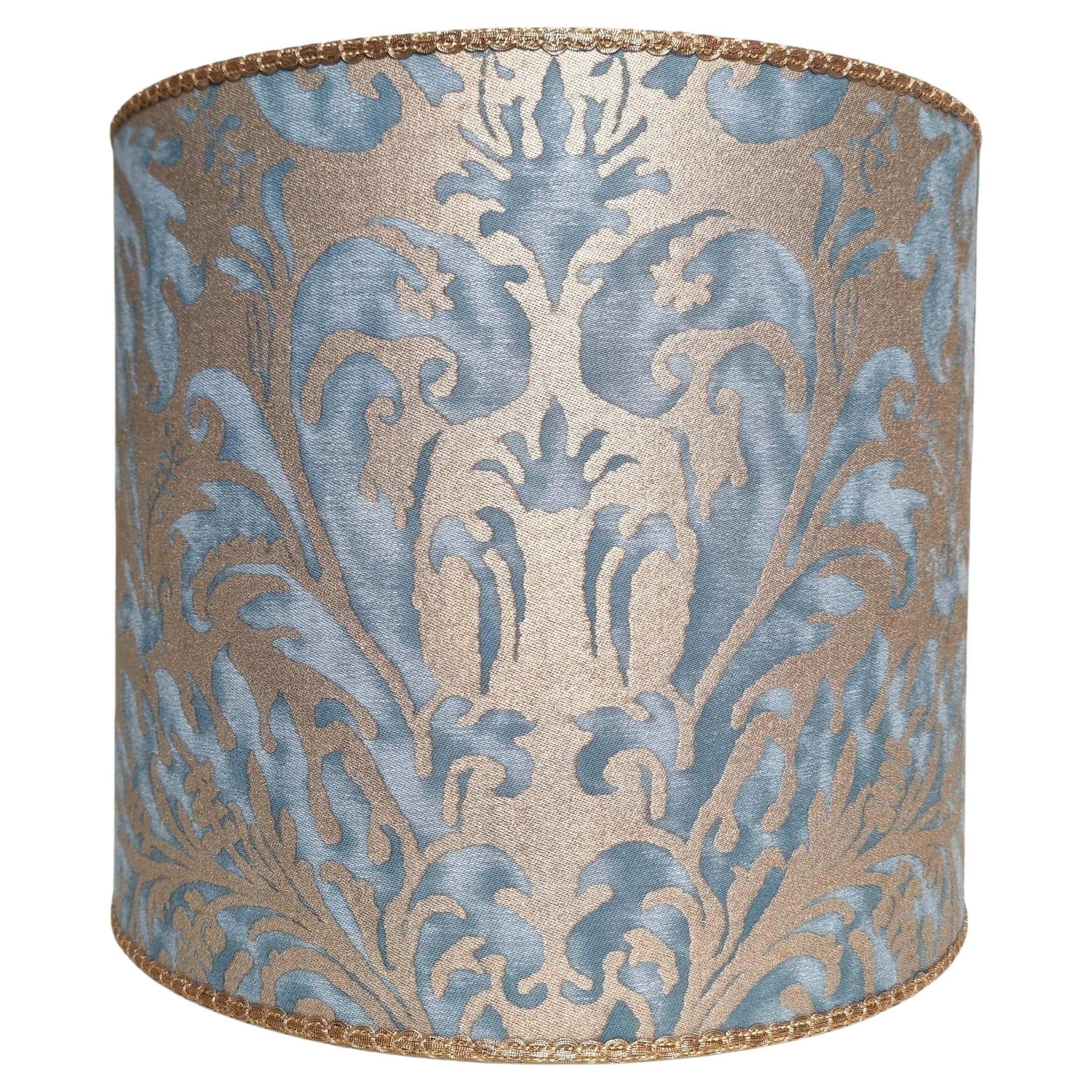 Handmade Drum Cylinder Lampshade - Fortuny Fabric Brilliant Blue & Silvery Gold Sevres Pattern