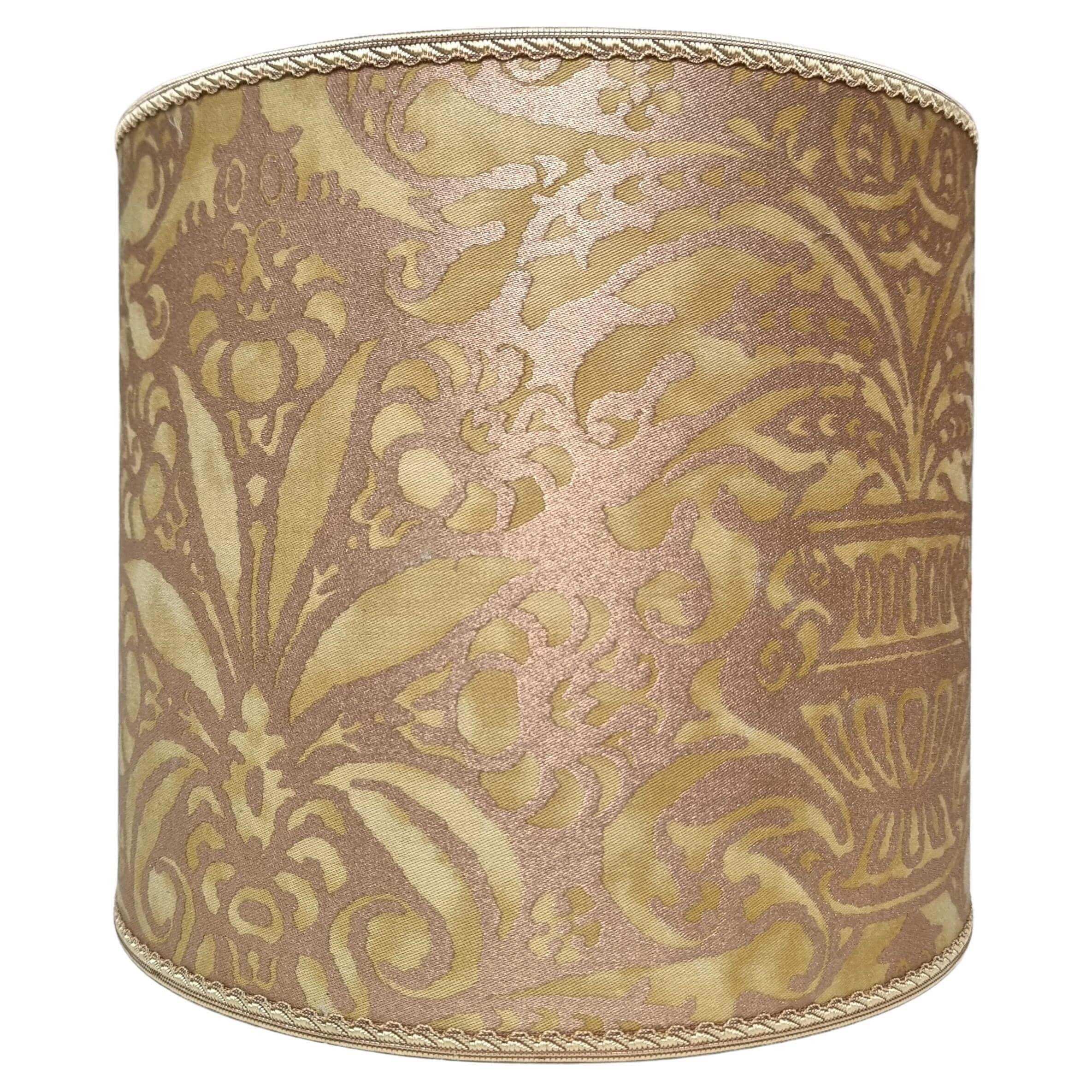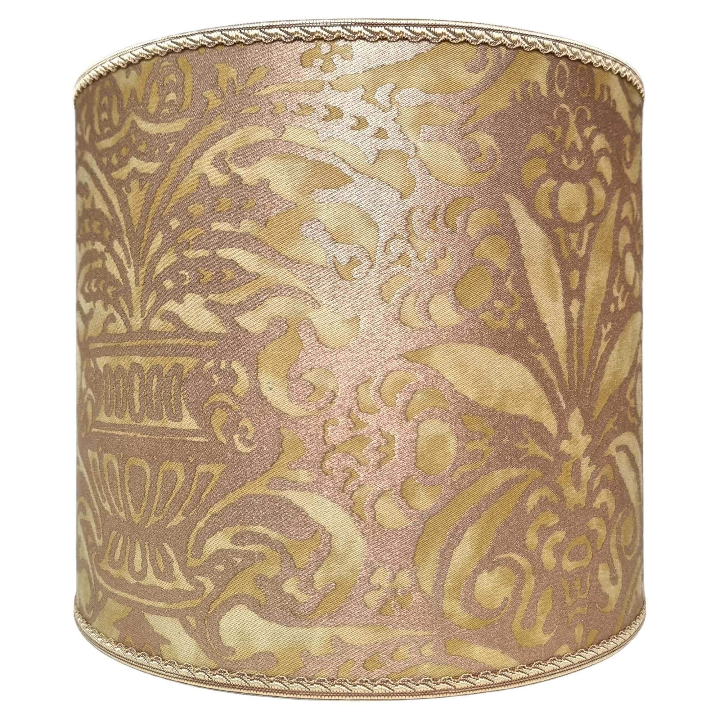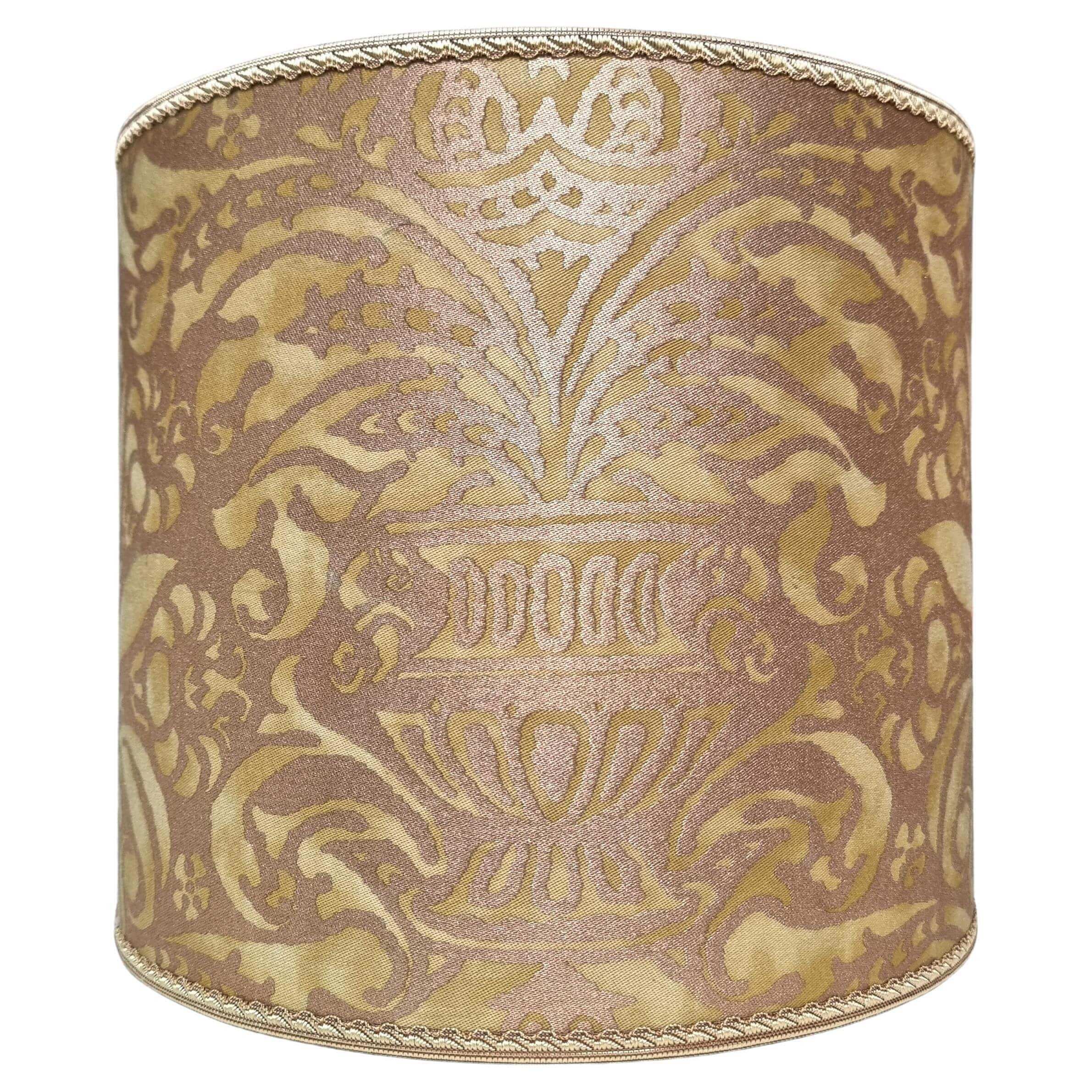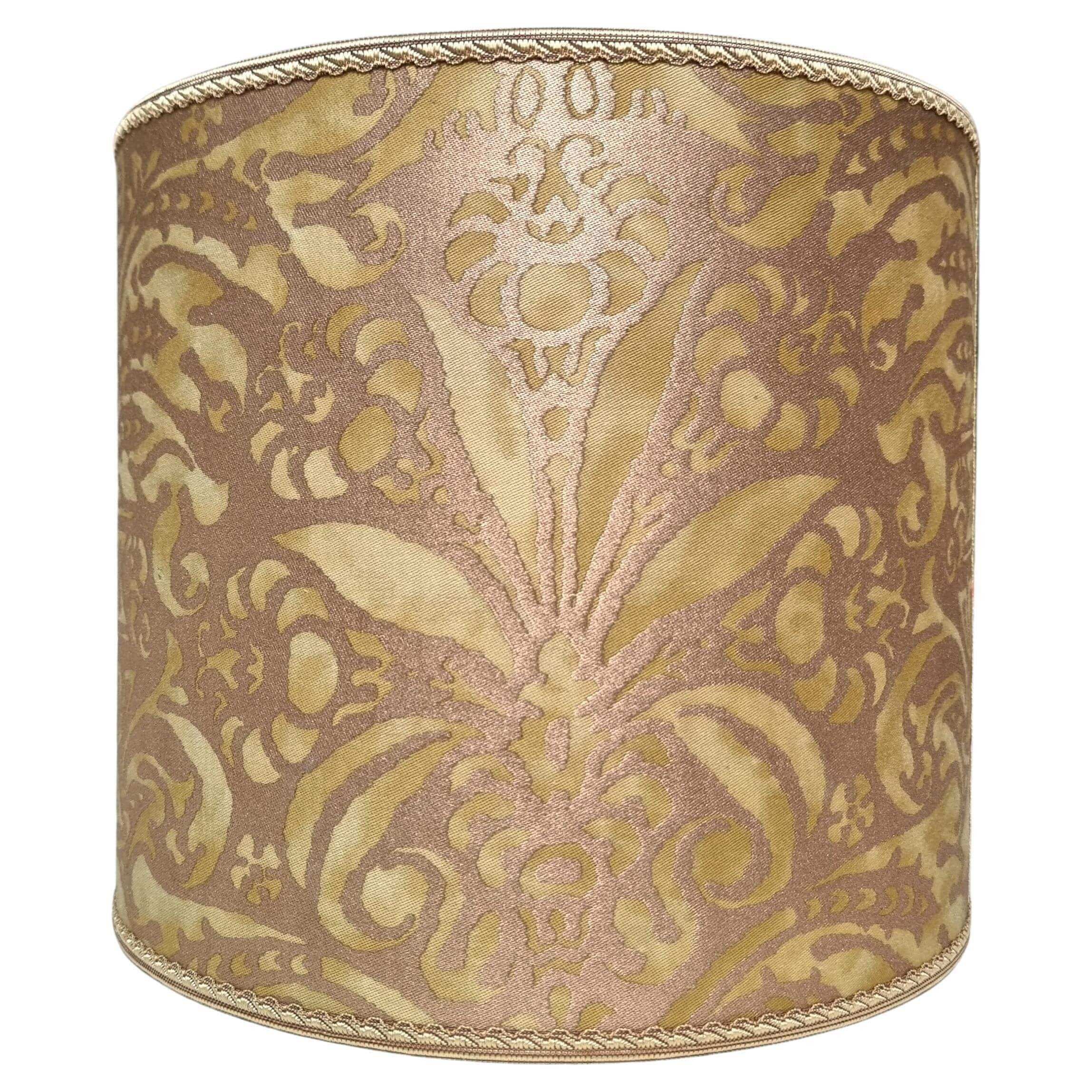 Handmade Drum Cylinder Lampshade - Fortuny Fabric Green & Silvery Gold Campanelle Pattern