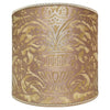 This customizable drum lampshade is handmade using Fortuny fabric - Campanelle pattern - in green & silvery gold color, finished with gold trim