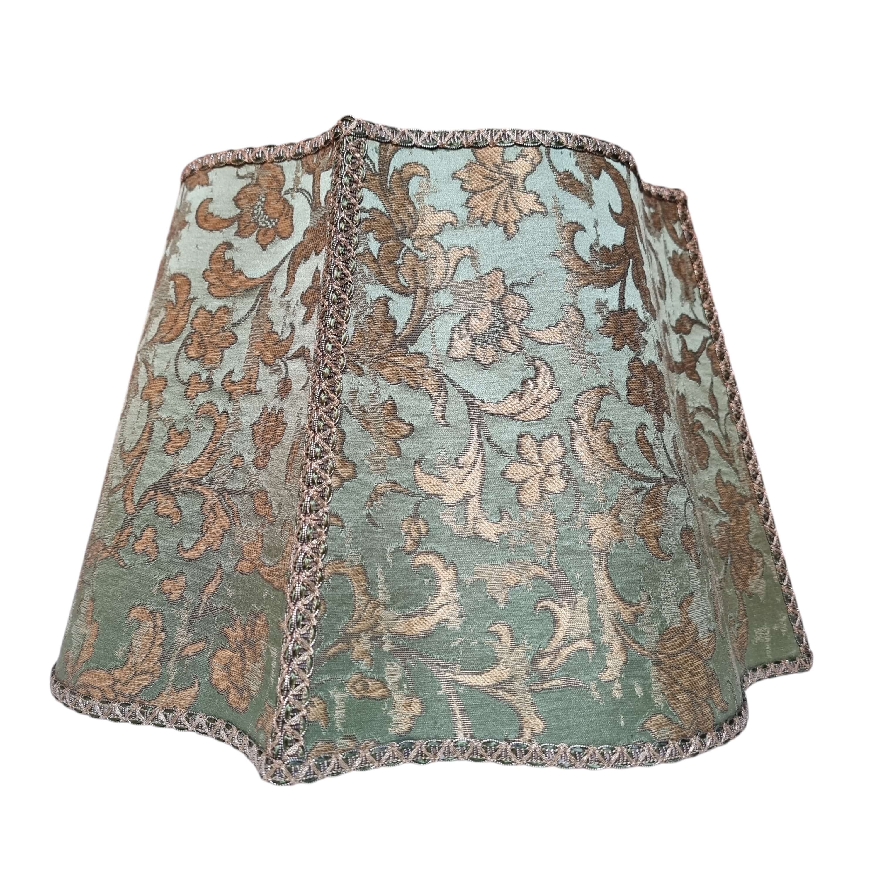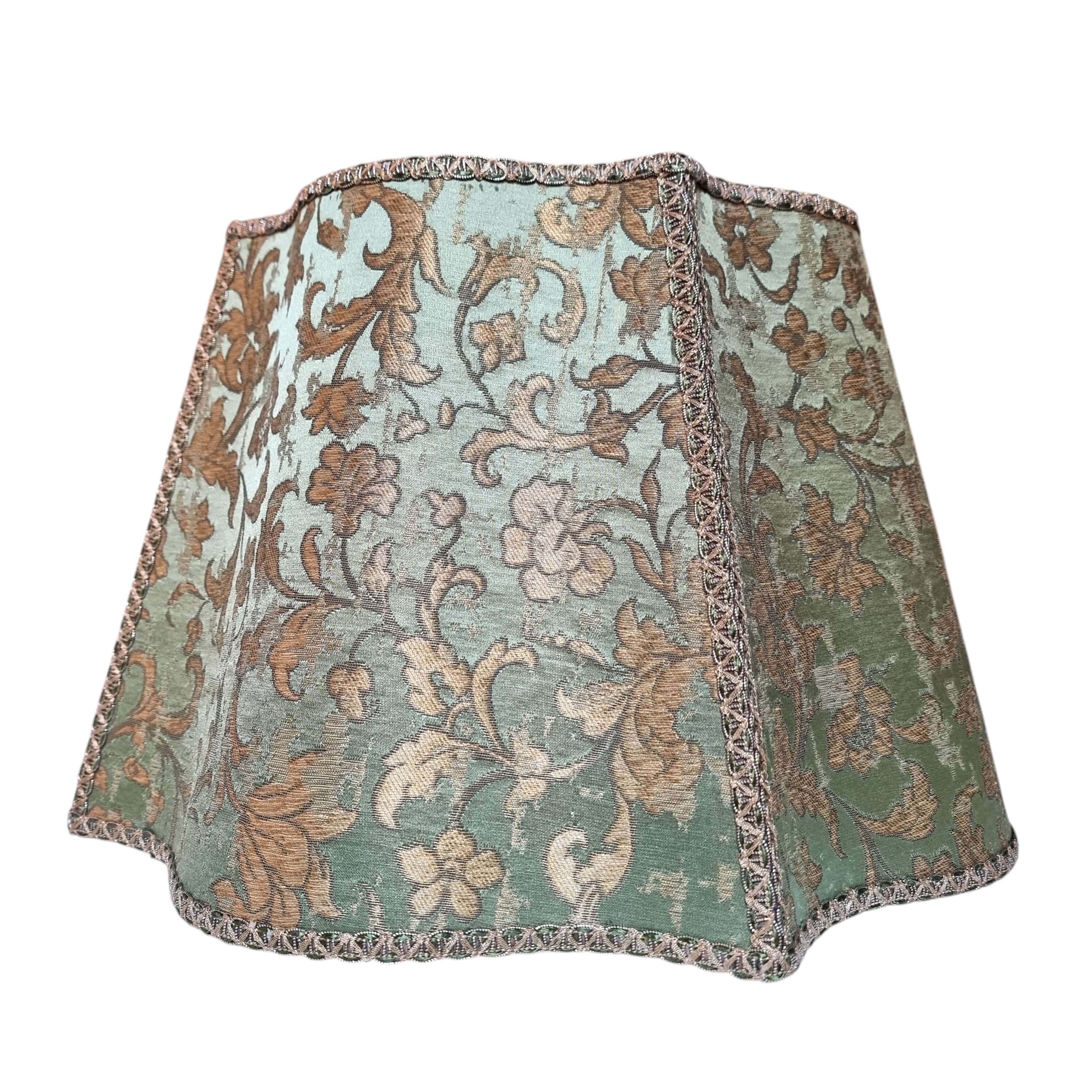 Handmade Fancy Square Lampshade - Green and Gold Silk Jacquard Rubelli Fabric Les Indes Galantes Pattern
