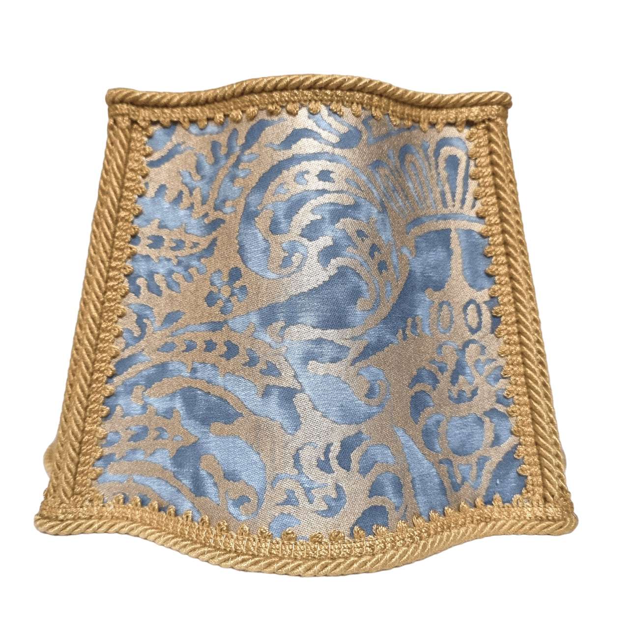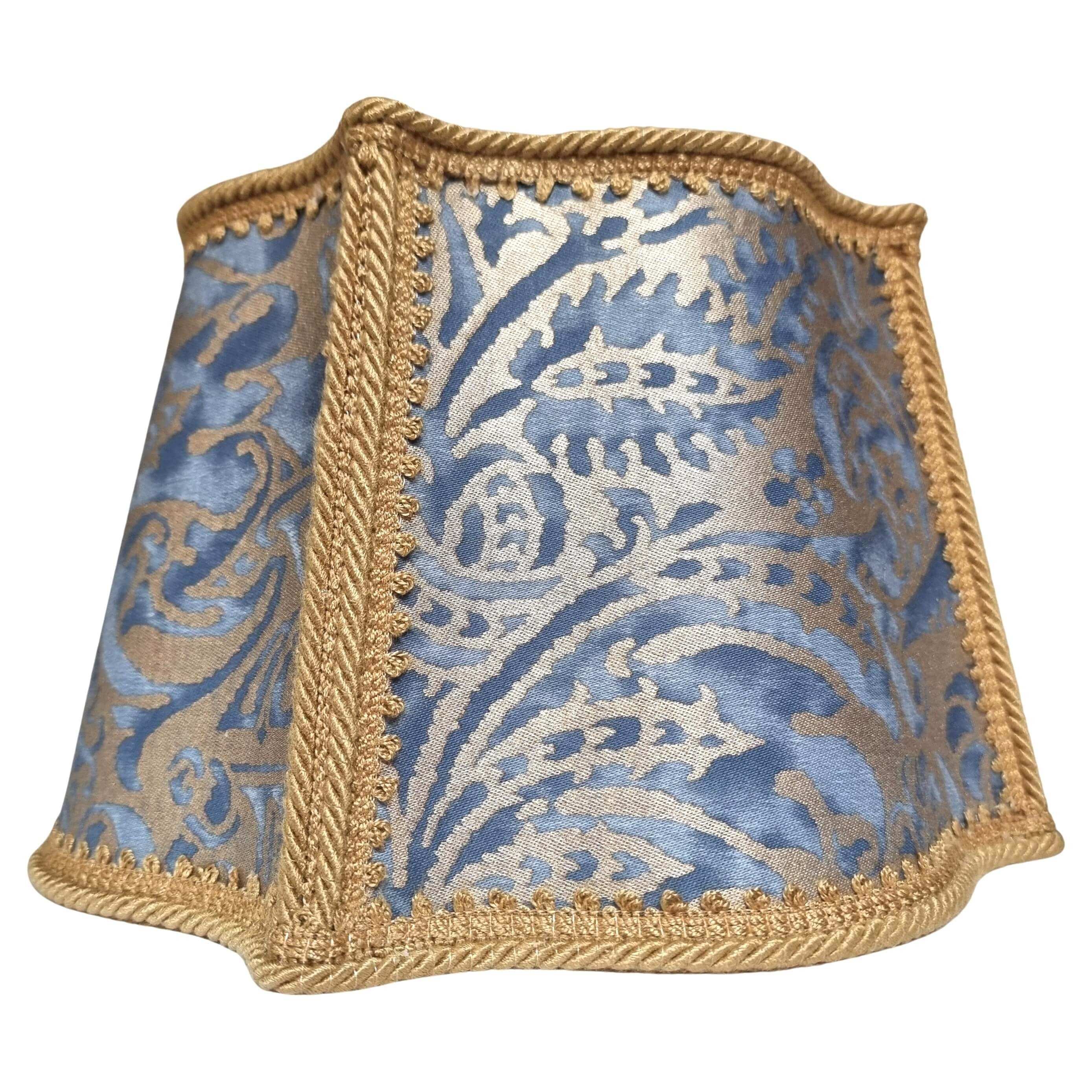 Handmade Fancy Square Lampshade - Fortuny Fabric Blue & Silvery Gold Campanelle Pattern