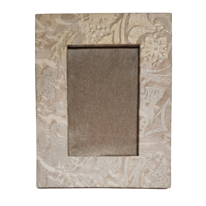 Fortuny Fabric Covered Tabletop Picture Photo Frame Mushroom & Silvery Gold Persepolis Pattern