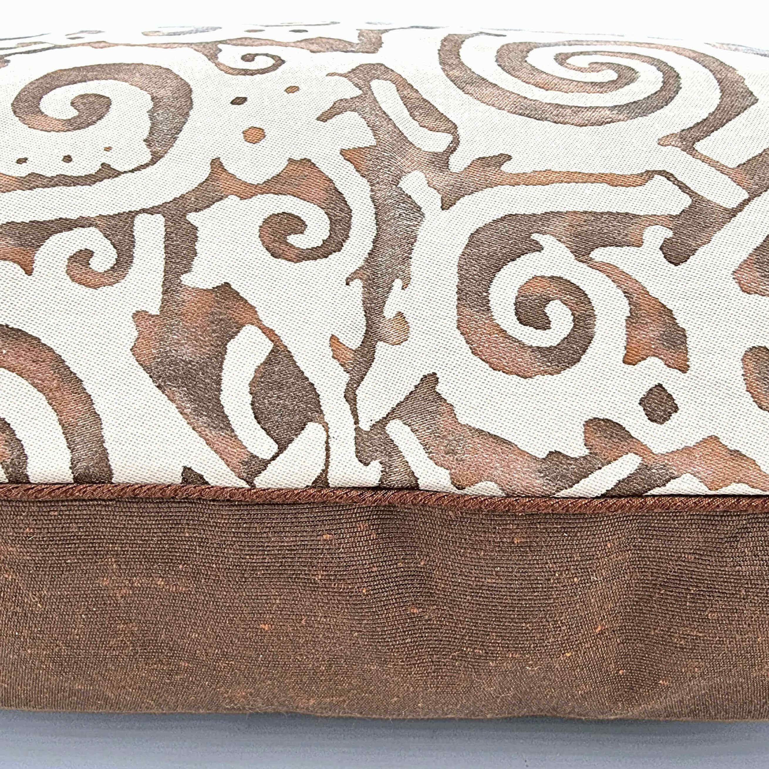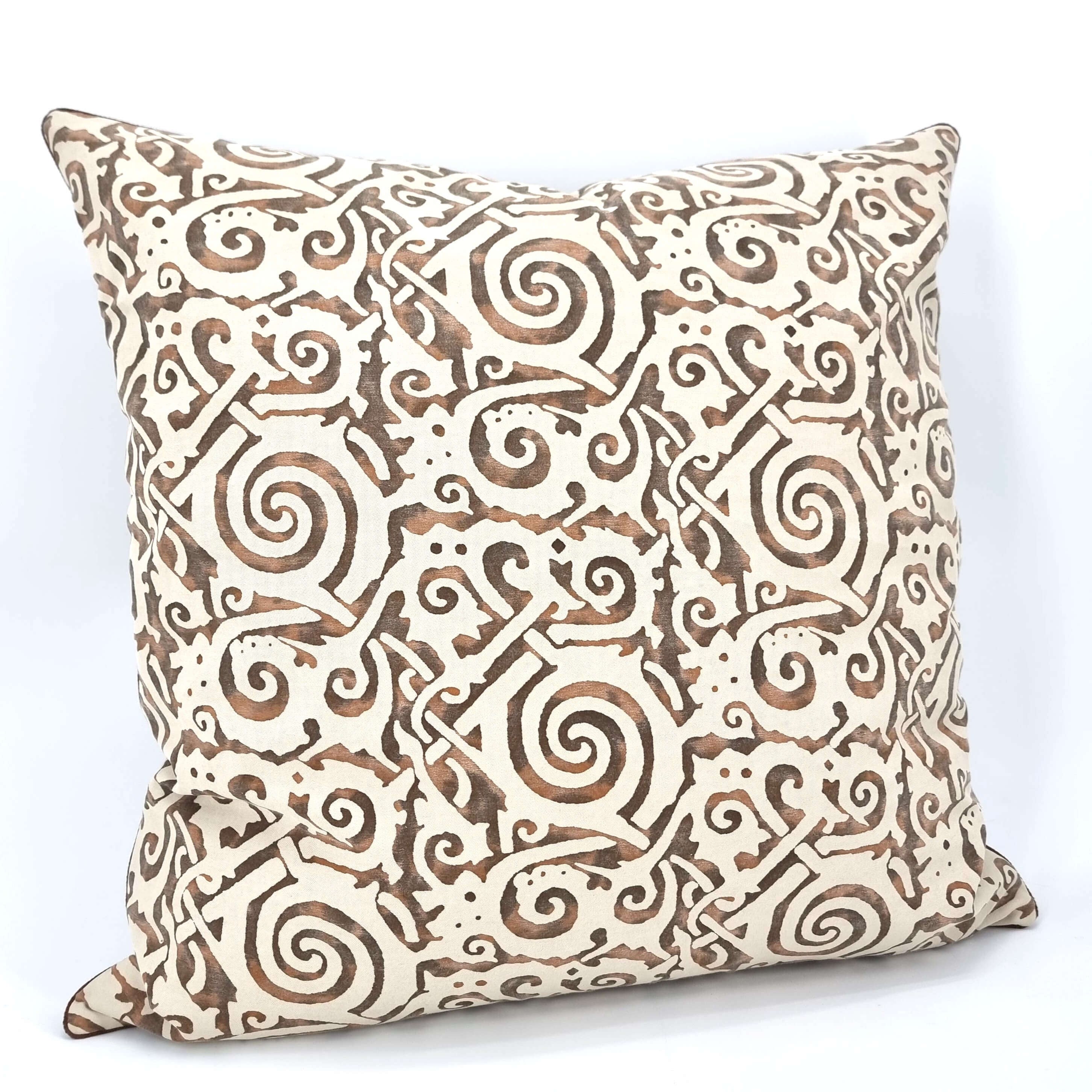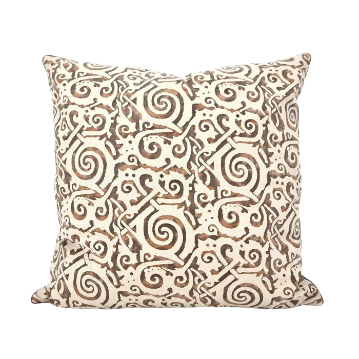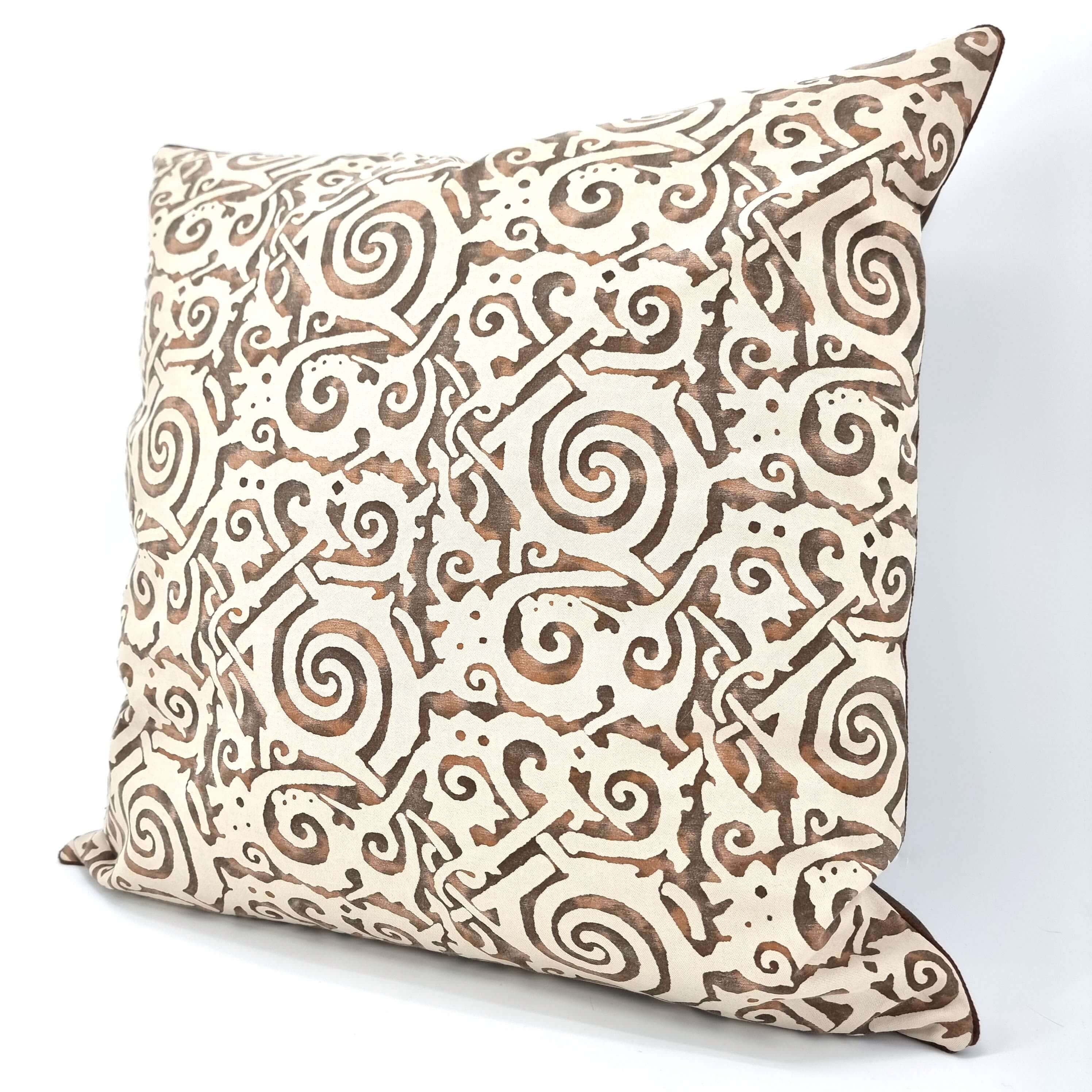 Handmade Decorative Pillow Made With Fortuny Fabric – Tang Brown, Tan, Black & Pale Beige Maori Pattern