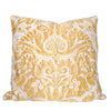 This customizable throw pillow cover is handmade using Fortuny fabric Demedici pattern in yellow & white color, the back of the pillow is made with Rubelli fabric ivory color