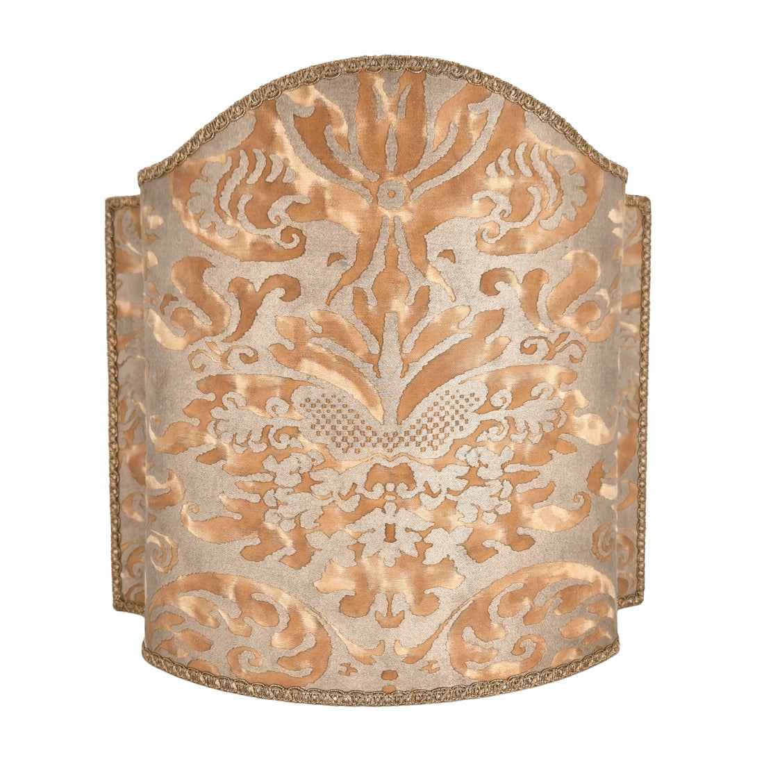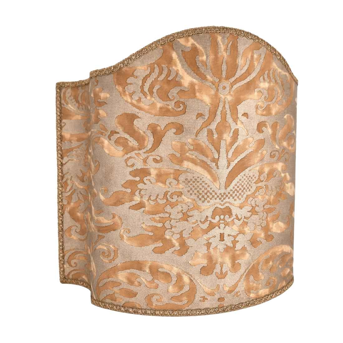 This customizable Venetian lampshade is handmade using Fortuny fabric - Sevigne pattern - in warm french brown & gold color, finished with an antique gold trim