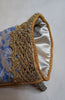 This customizable Christmas stocking is handmade using Fortuny fabric - Richelieu pattern - in indigo blue & gold color, back side and fully lined in gold Rubelli satin with piping edges and gold lace trim on top