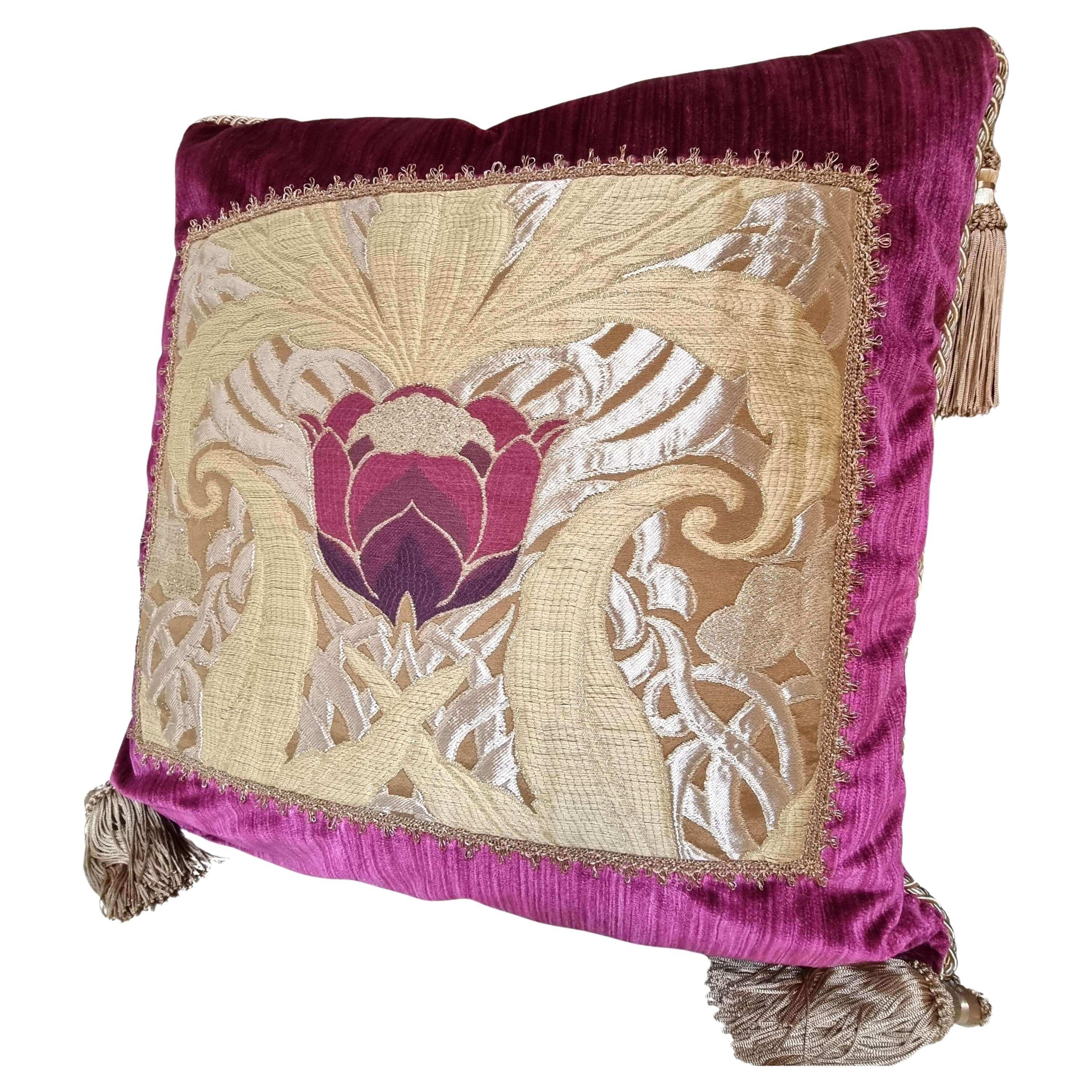 Handmade Decorative Pillow Made With Amethyst Rubelli Strie Silk Velvet With Luigi Bevilacqua Lampas Framed Front Panel