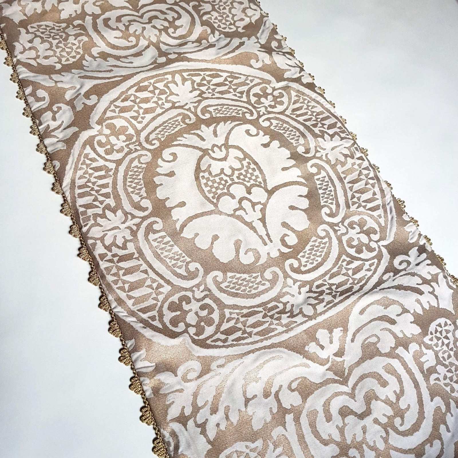 Luxury Table Runner Fortuny Fabric Champagne & Silvery Gold Orsini Pattern