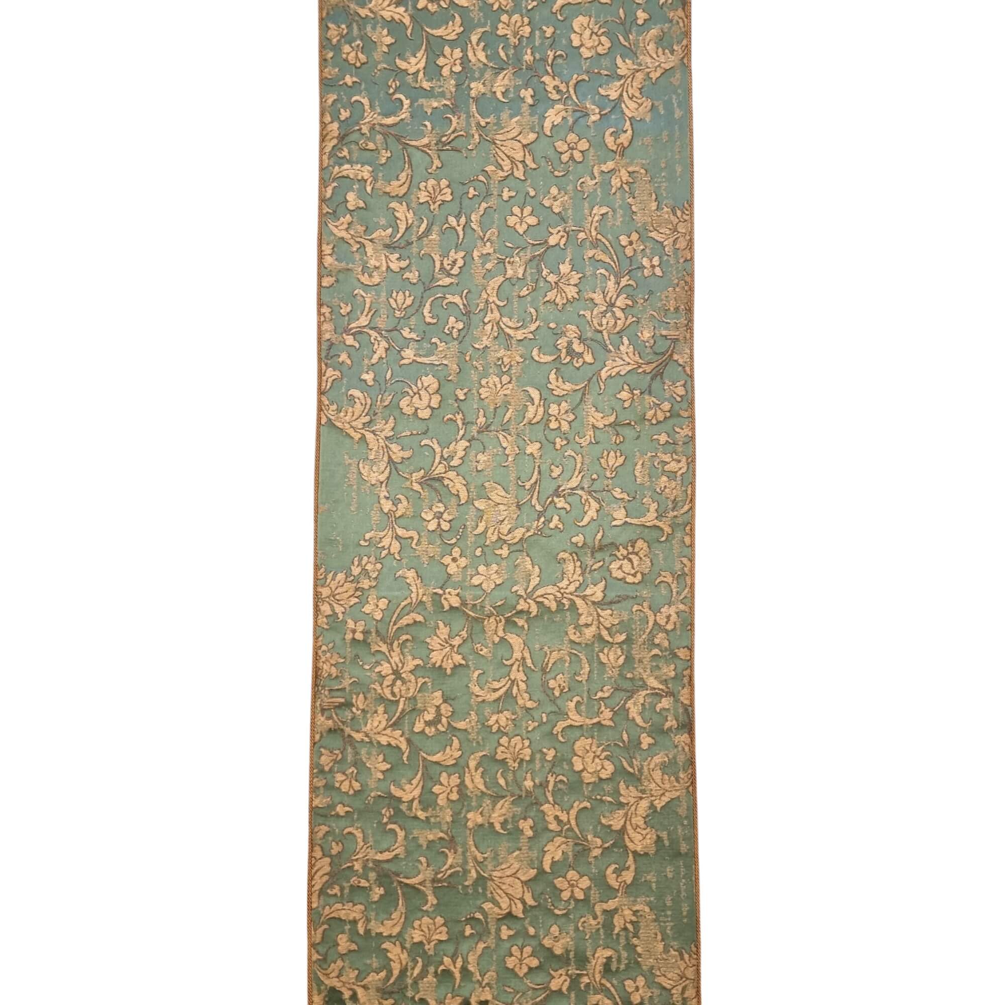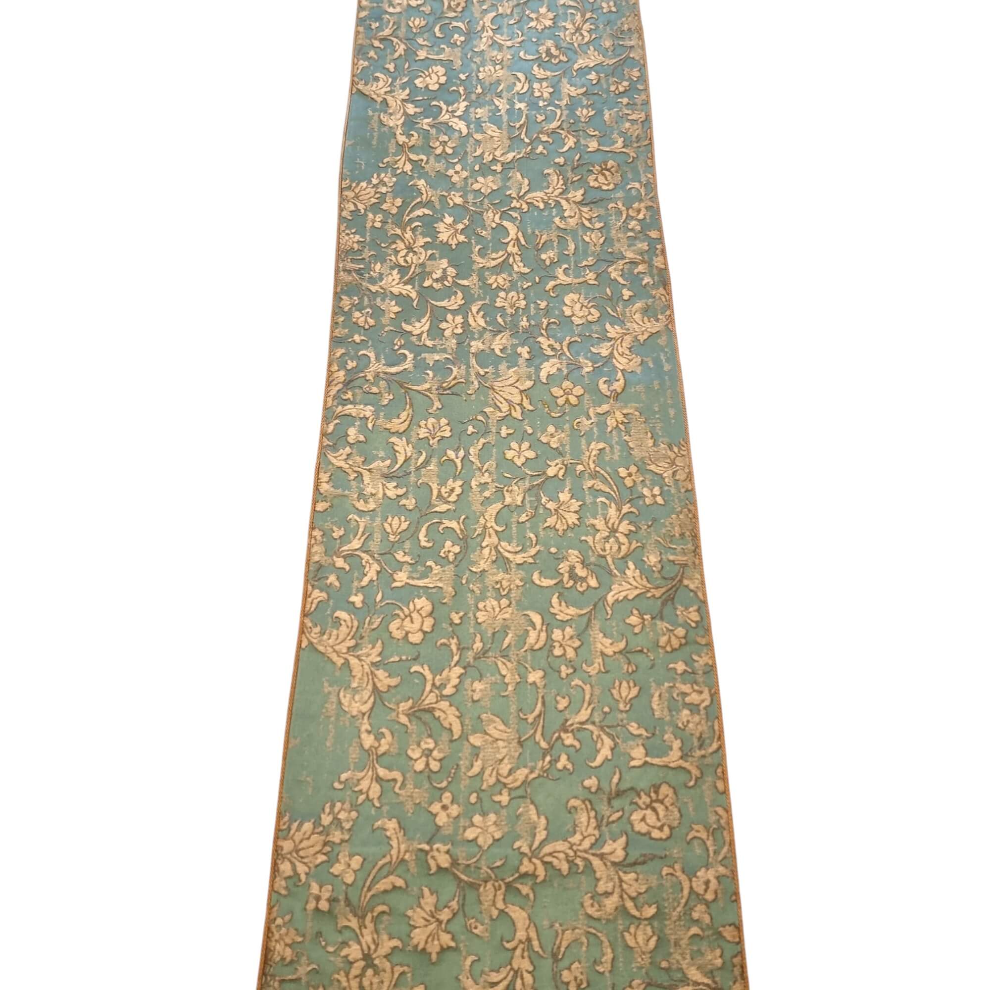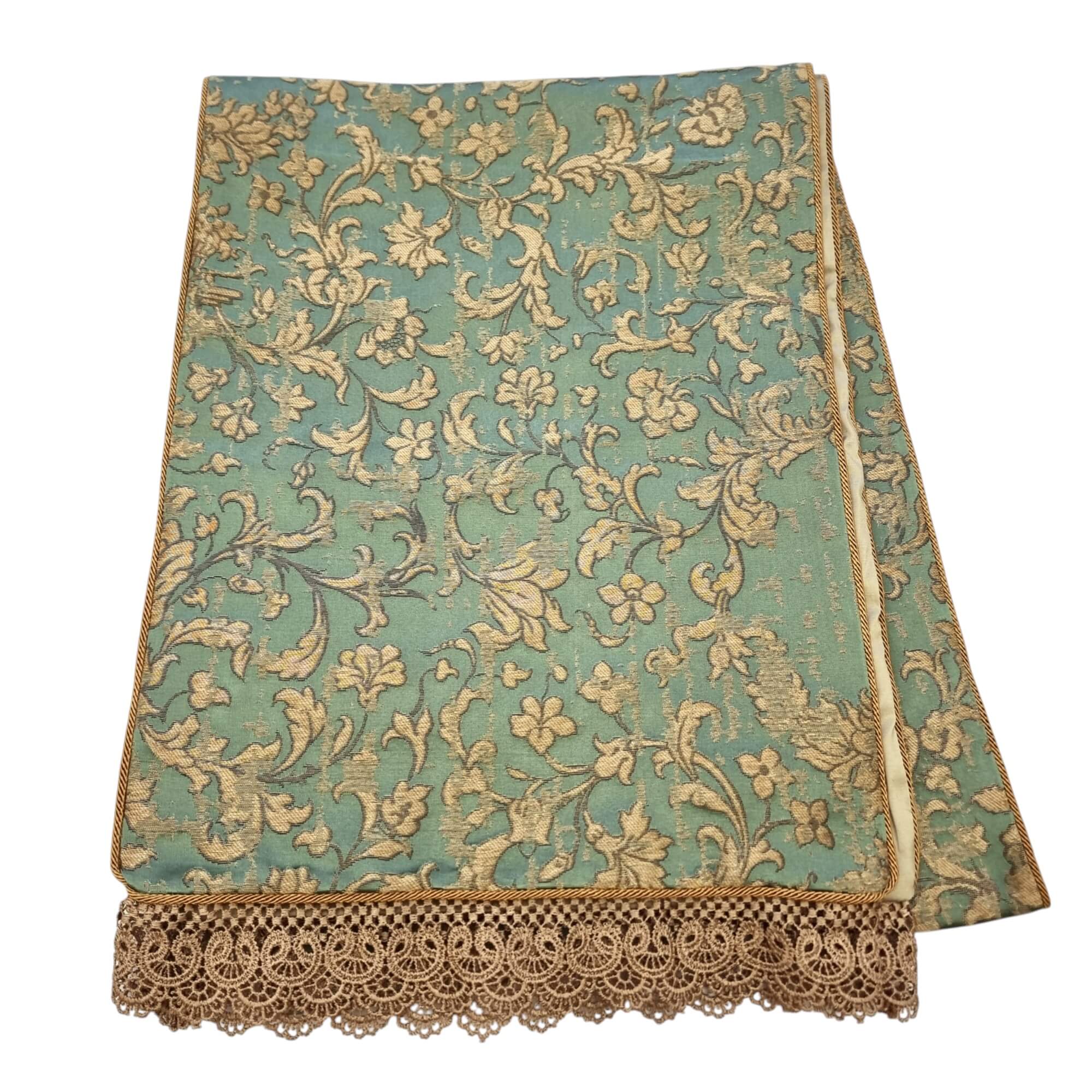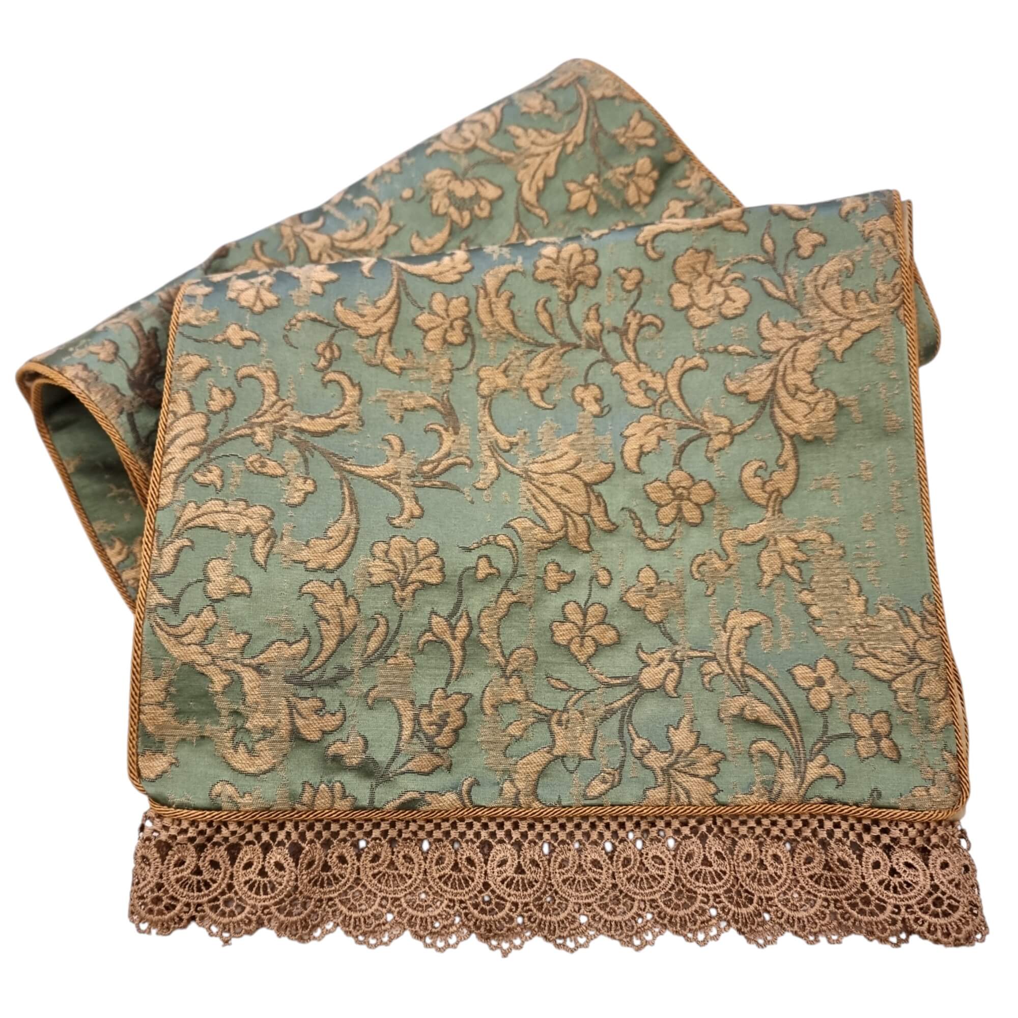 Luxury Table Runner Green & Gold Silk Jacquard Rubelli Fabric Les Indes Galantes Pattern with Gold Lace Trim