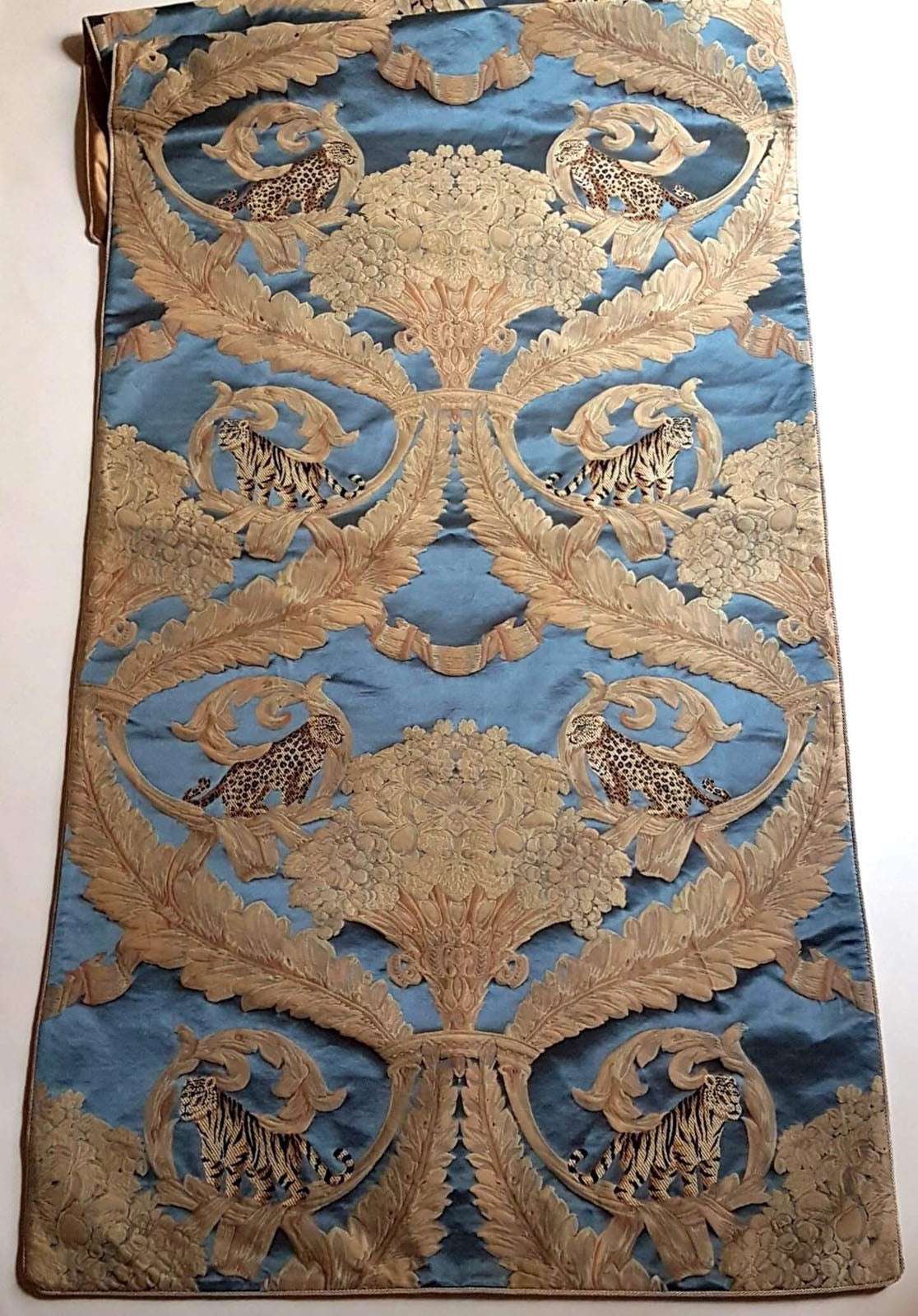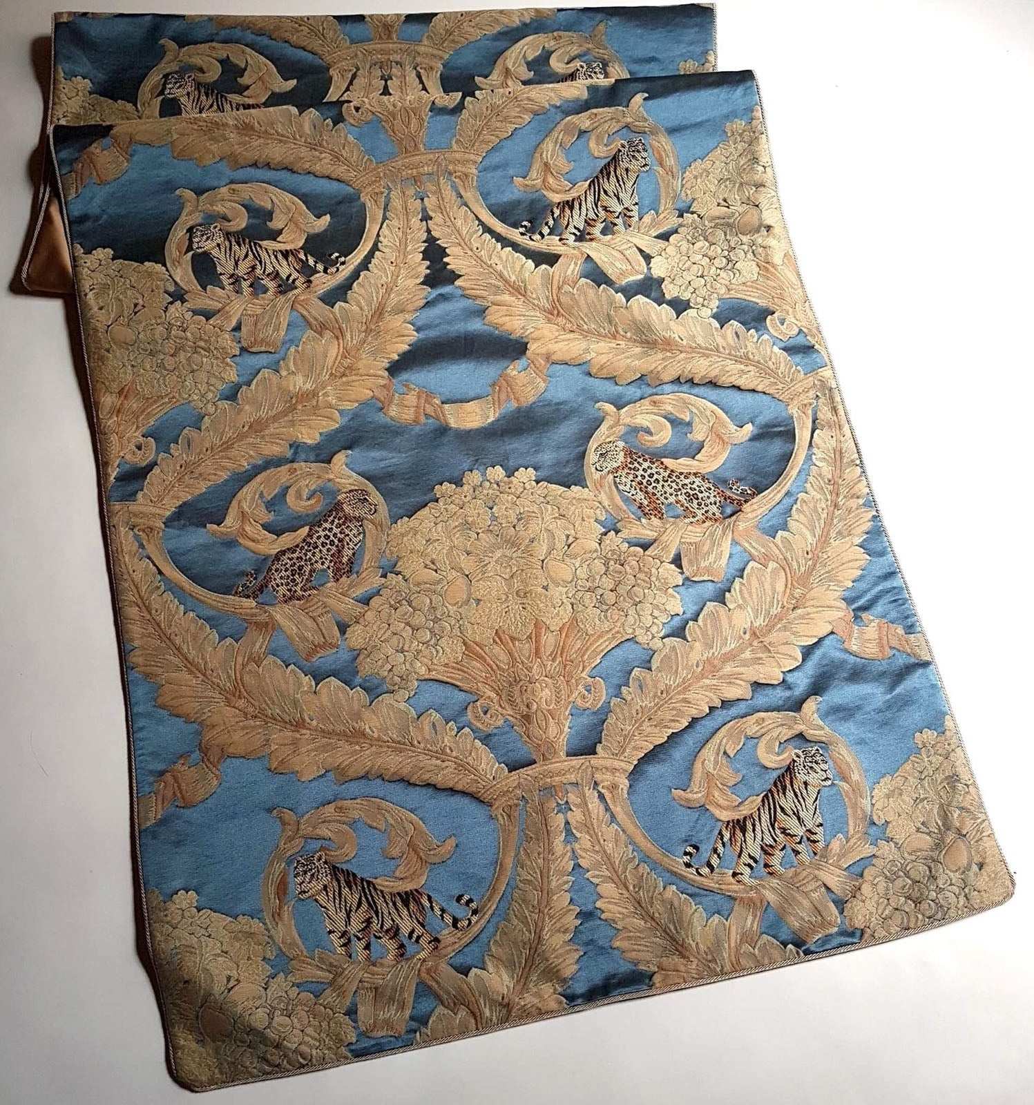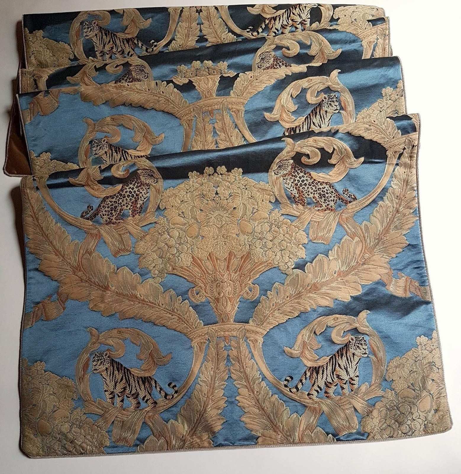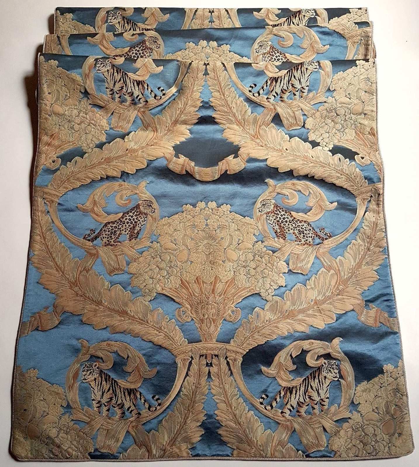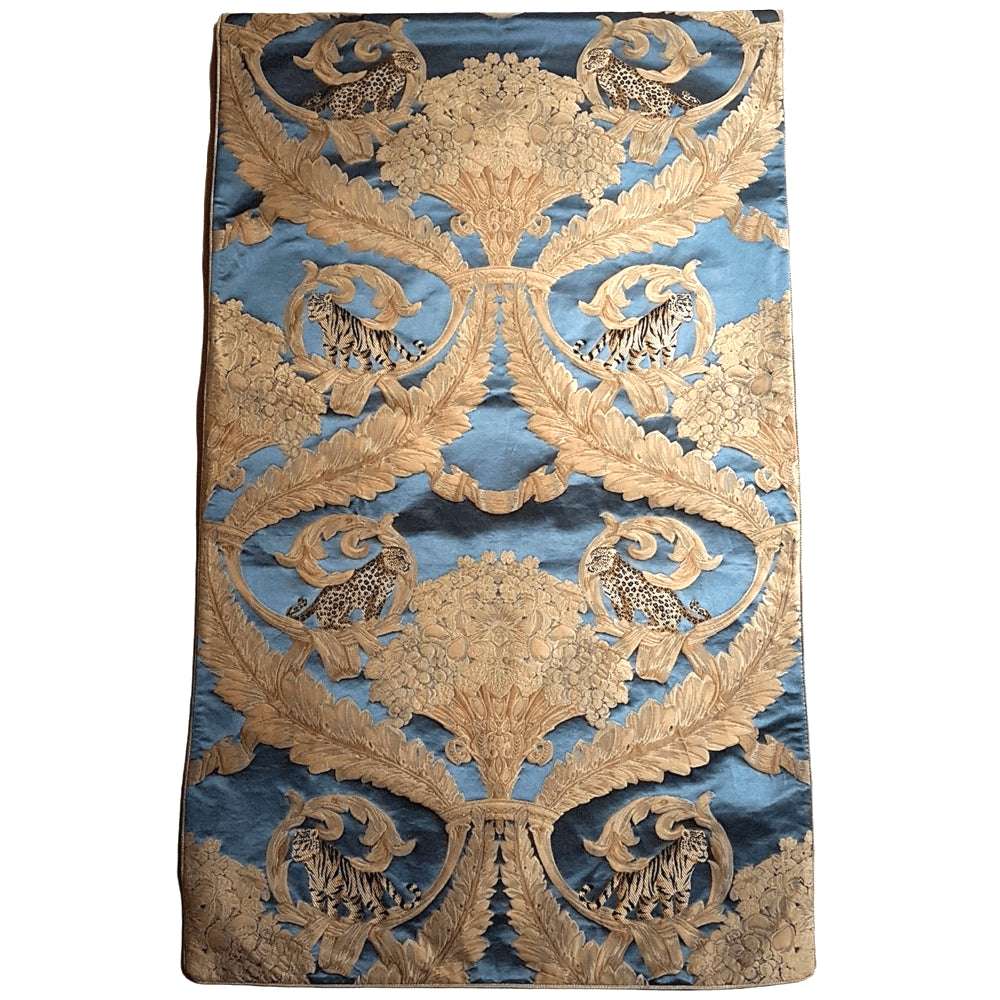 Luxury Table Runner Rubelli Silk Bracaded Damask Blue Sandokan Pattern