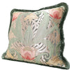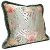 Handmade Decorative Pillow With Brush Fringe Luigi Bevilacqua Jade Green Silk Lampas Tulipani Pattern