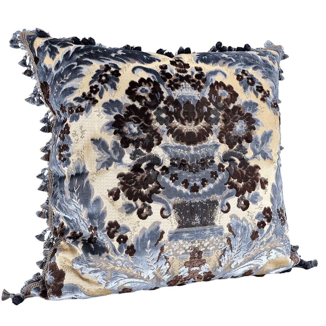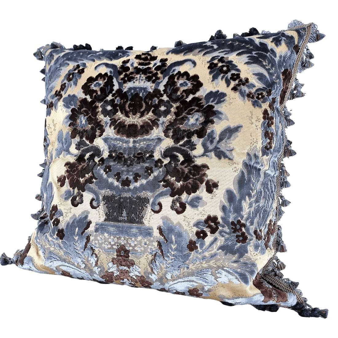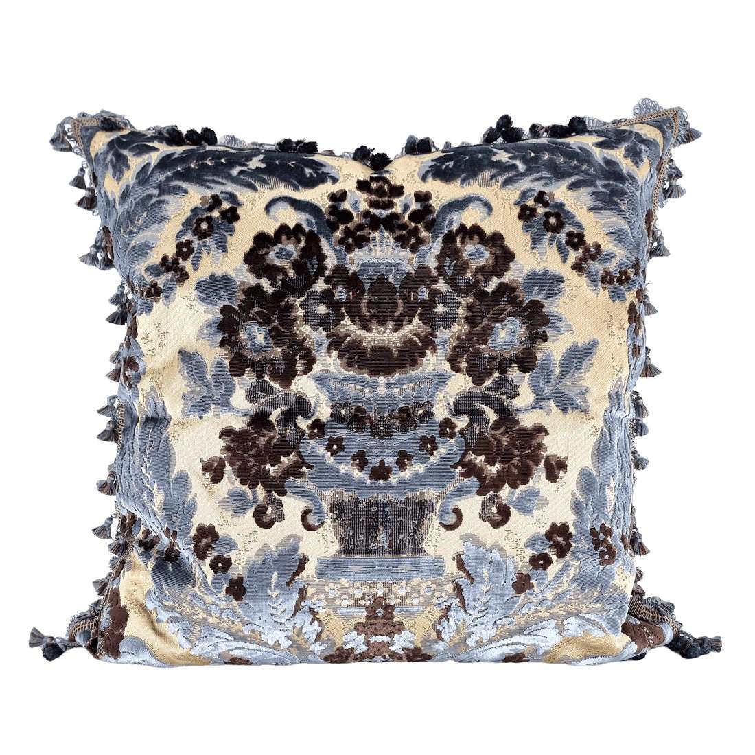 Handmade Decorative Pillow With Tassel Trim Luigi Bevilacqua Silk Multi-Coloured Velvet Petrolio Giardino Antico Pattern