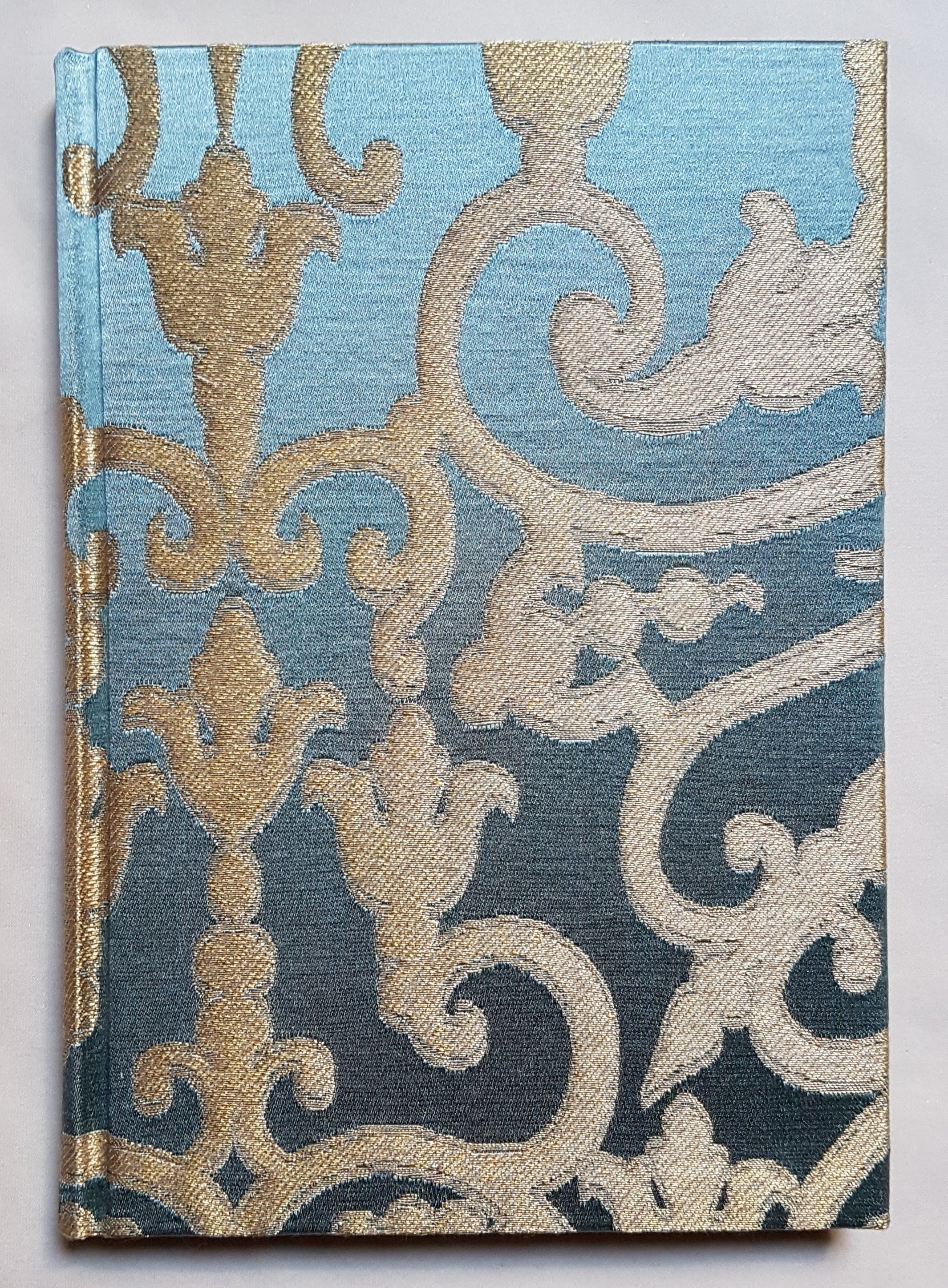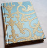 Rubelli Fabric Covered Journal Hardcover Notebook Silk Jacquard Blue & Gold Serlio Pattern