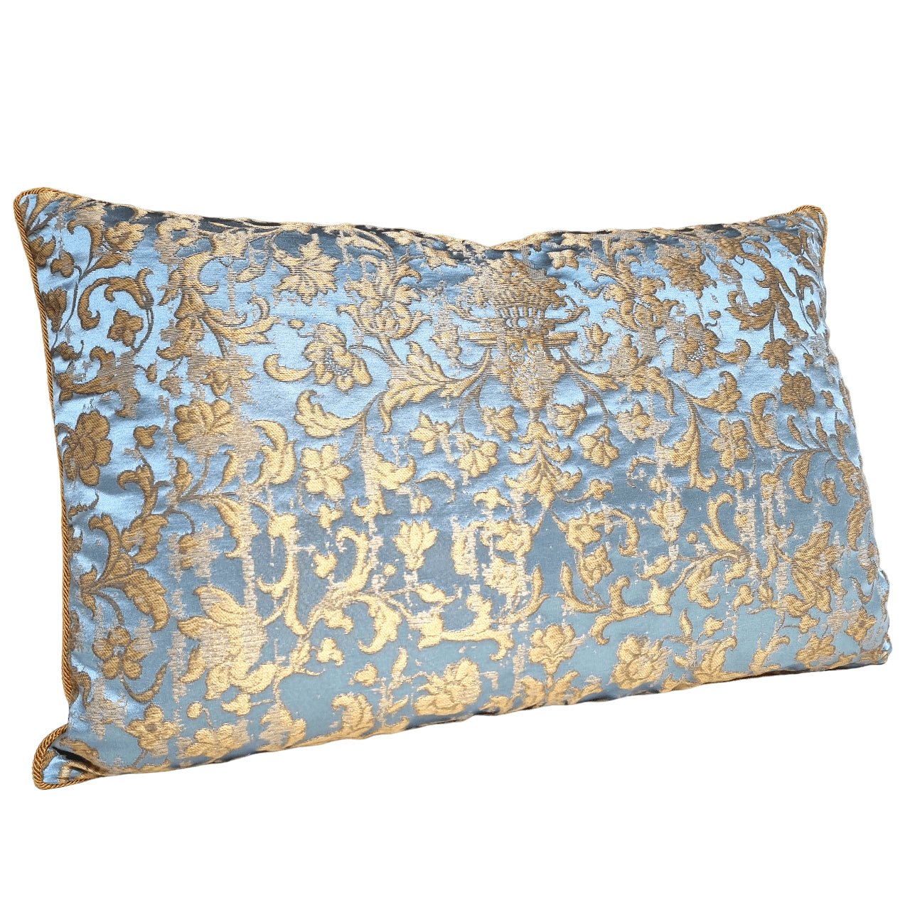 Sky Blue & Gold Silk Jacquard Les Indes Galantes Rubelli Fabric - Handmade Decorative Pillow