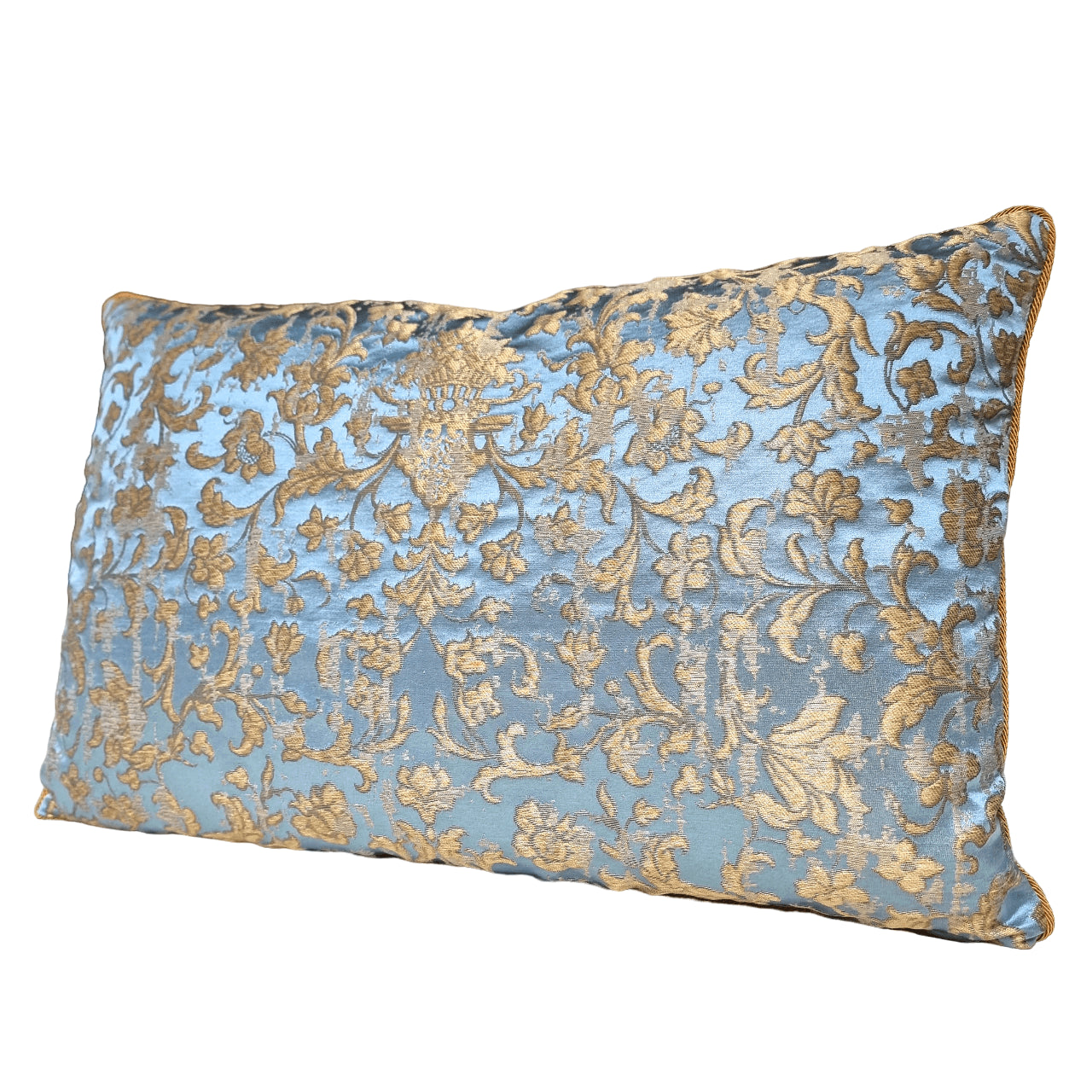 This customizable throw pillow cover is handmade using Rubelli silk jacquard fabric - Les Indes Galantes pattern - in sky blue and gold color