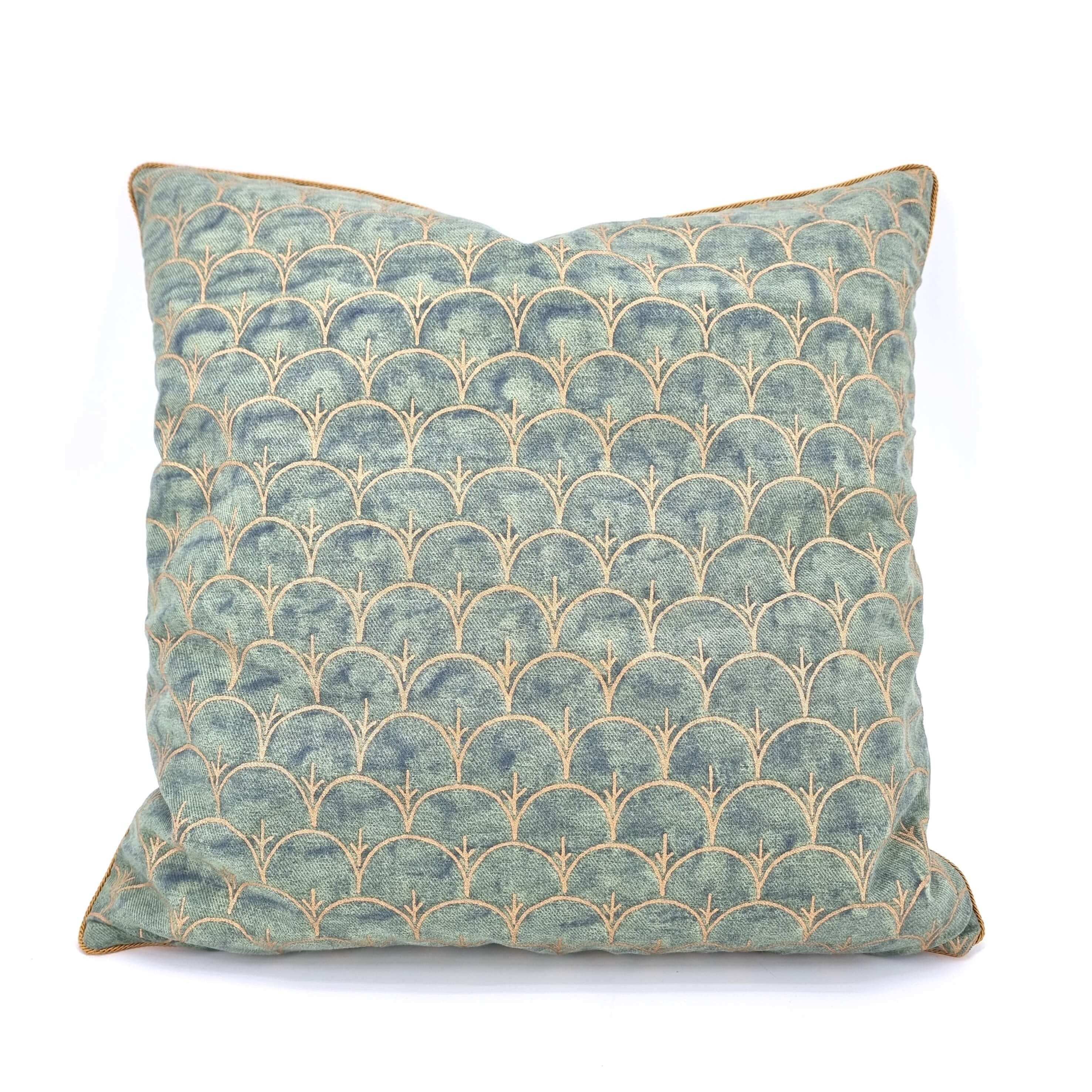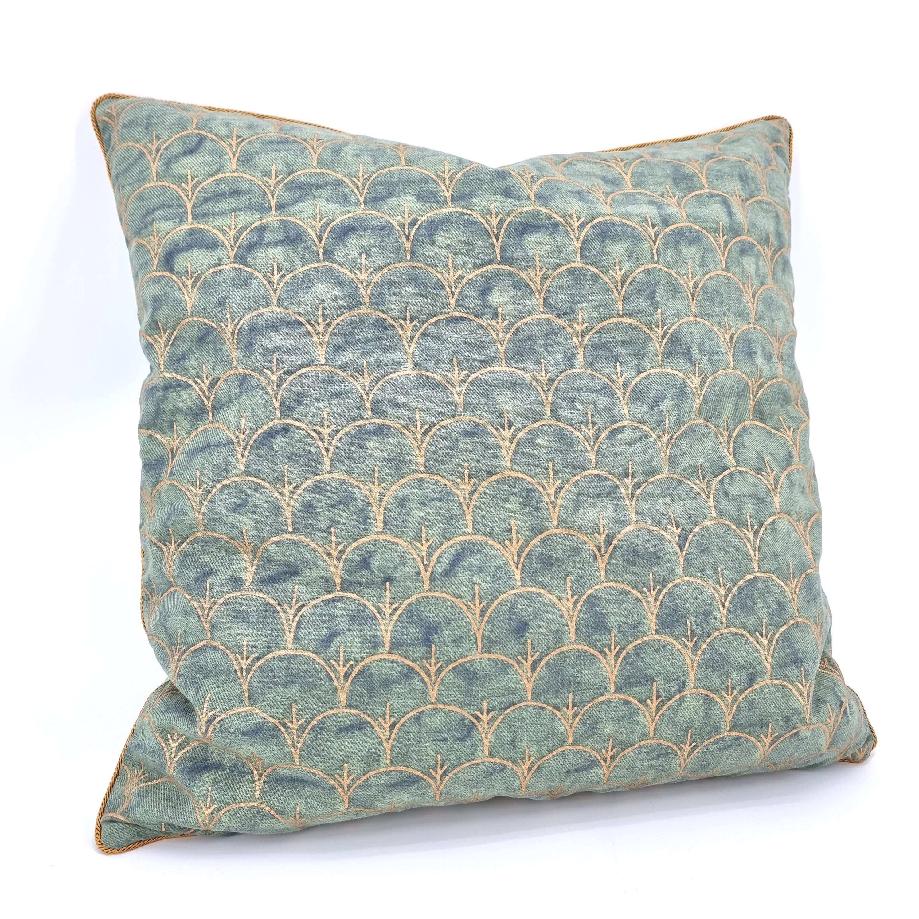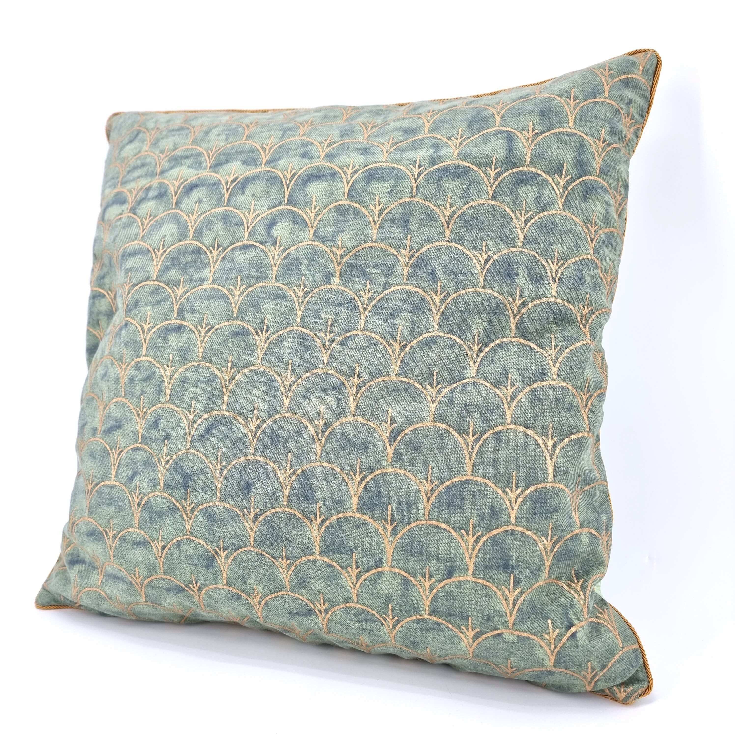 Handmade Decorative Pillow Made With Fortuny Fabric – Arboreto Pattern Pine & Gold Texture